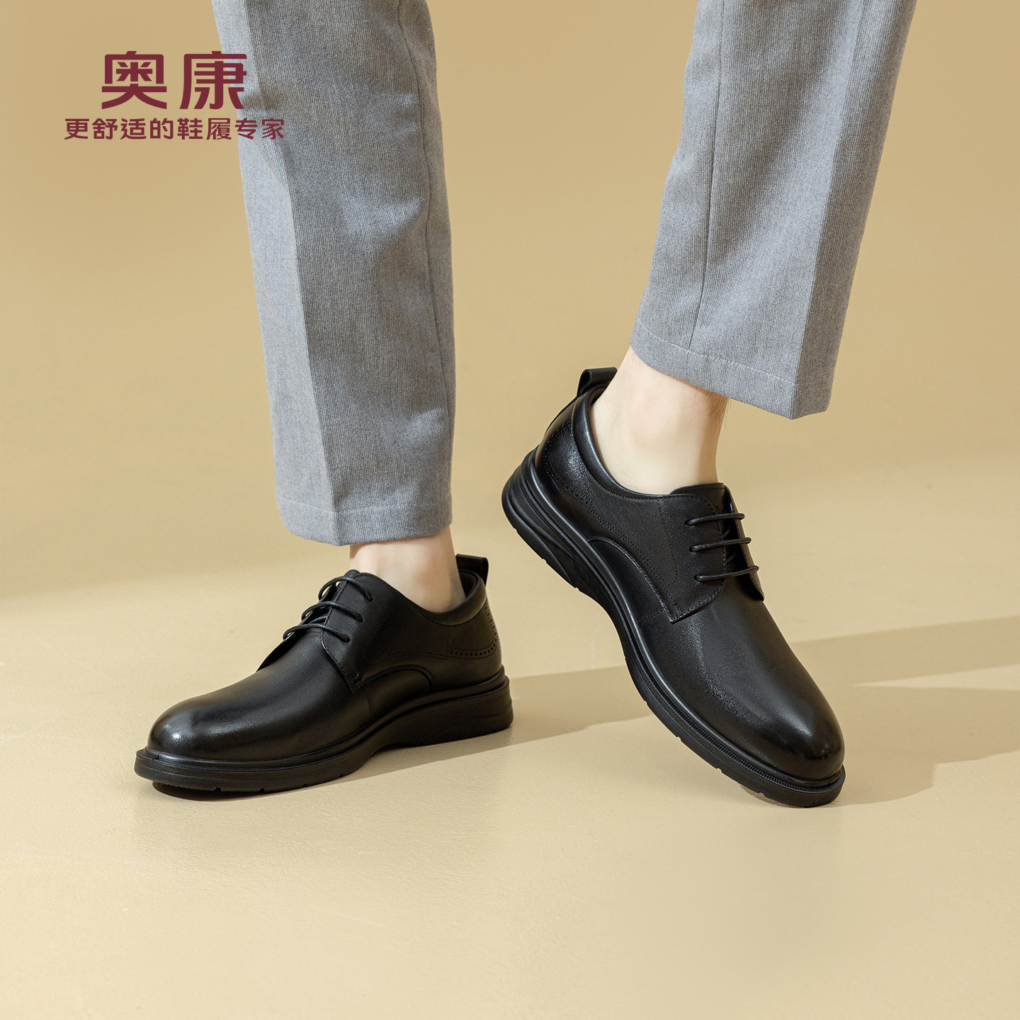 奥康男鞋春秋季时尚商务休闲皮鞋男真皮软面系带办公室百搭爸爸鞋