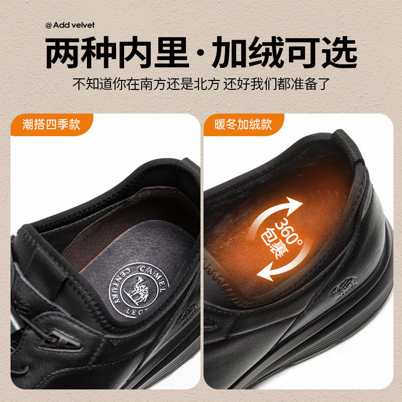 骆驼2025男鞋冬季男士休闲皮鞋加绒保暖爸爸鞋运动鞋男一脚蹬男鞋