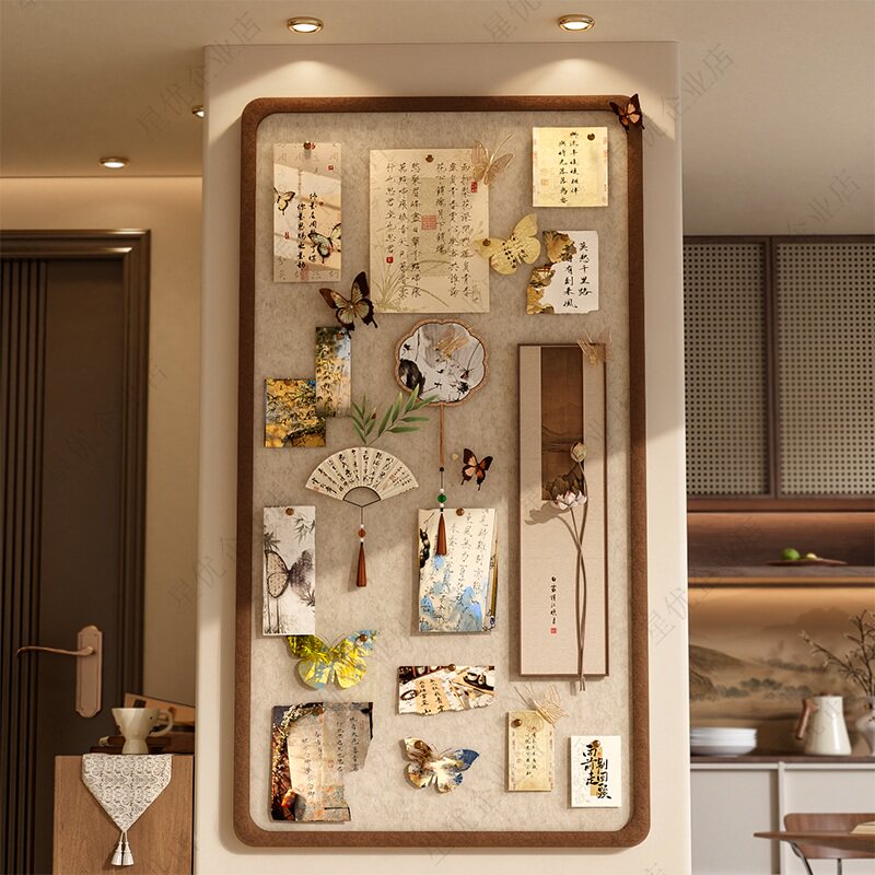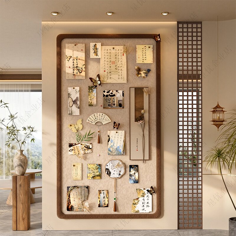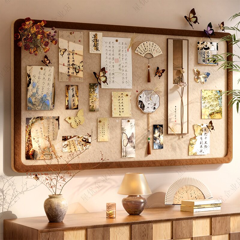 复古中式毛毡板照片墙背景板展示免打孔装饰创意书桌文化留言板