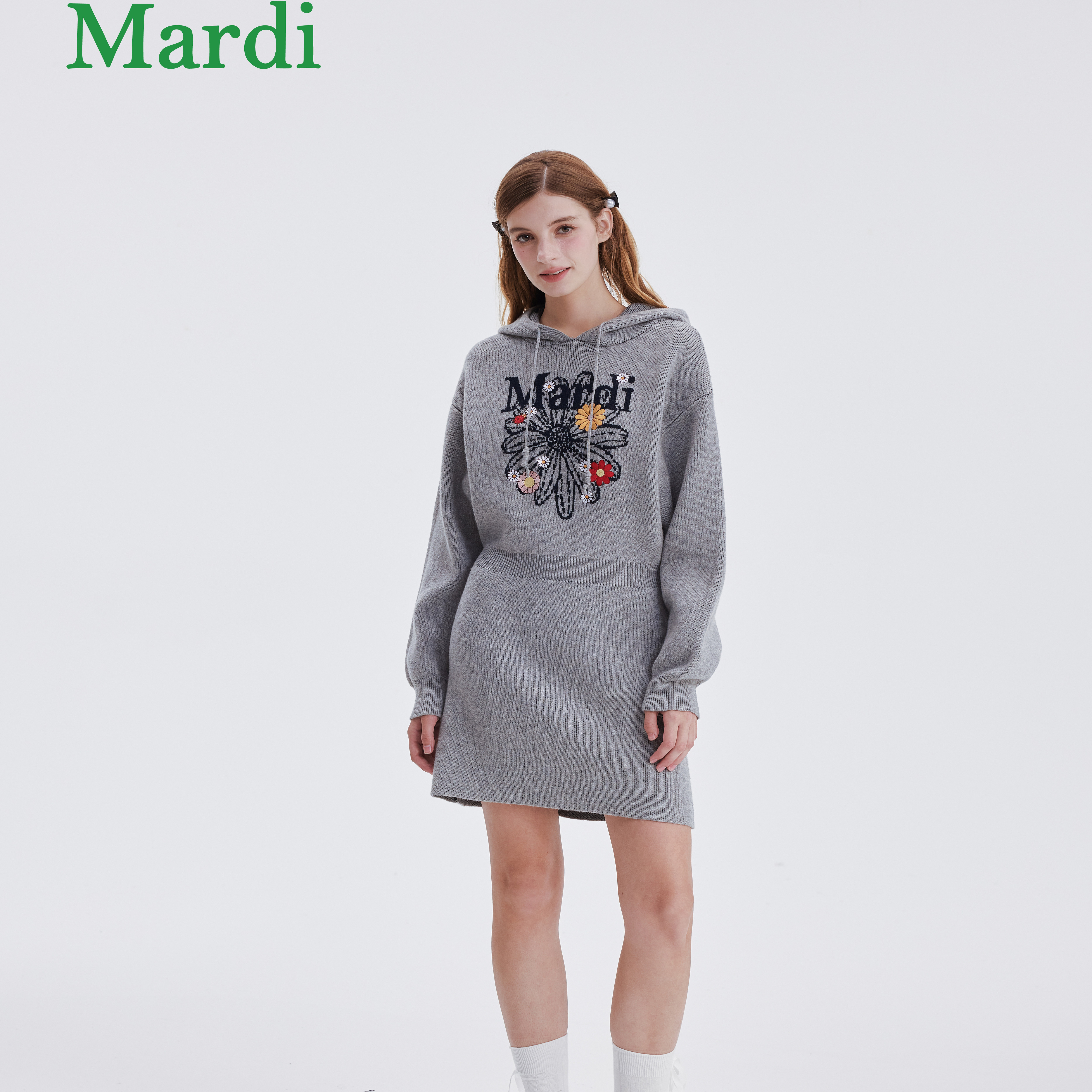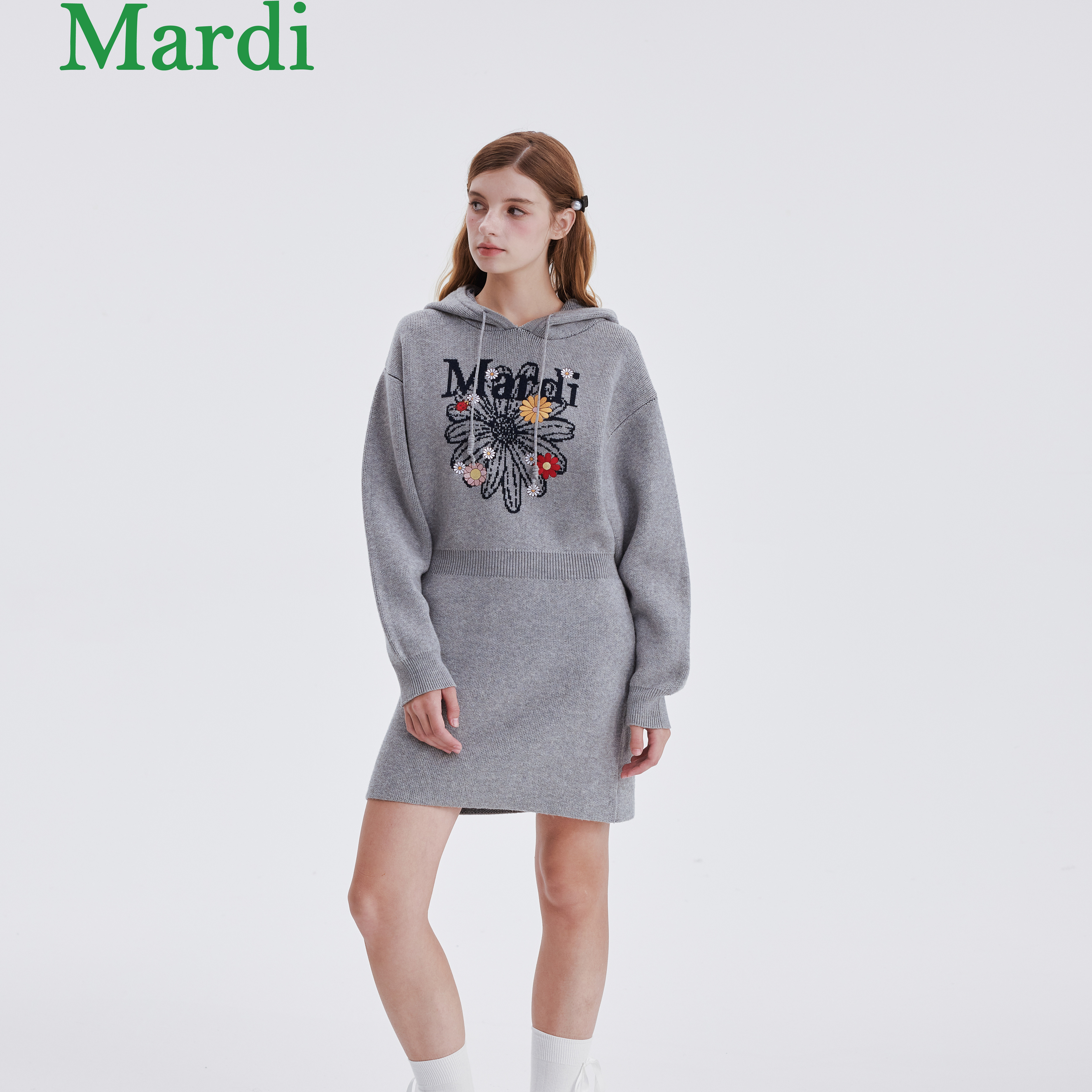 MARDI小雏菊毛衣裙女连帽连衣裙休闲气质修身百搭时尚灰色少女