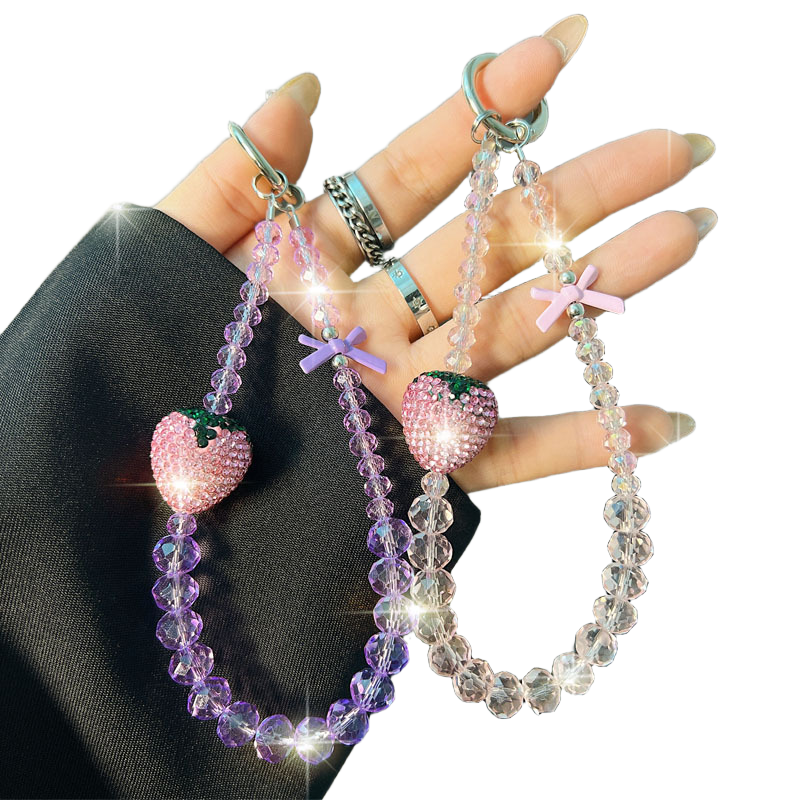 水晶手机链天然紫水晶合金锆石精致招财运祈福钢绳挂链车钥匙扣链