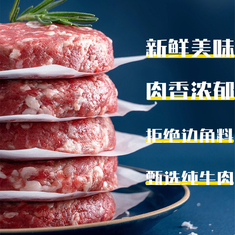 牛肉饼汉堡肉饼新鲜牛肉儿童早餐半成品牛排馅饼保鲜谷饲