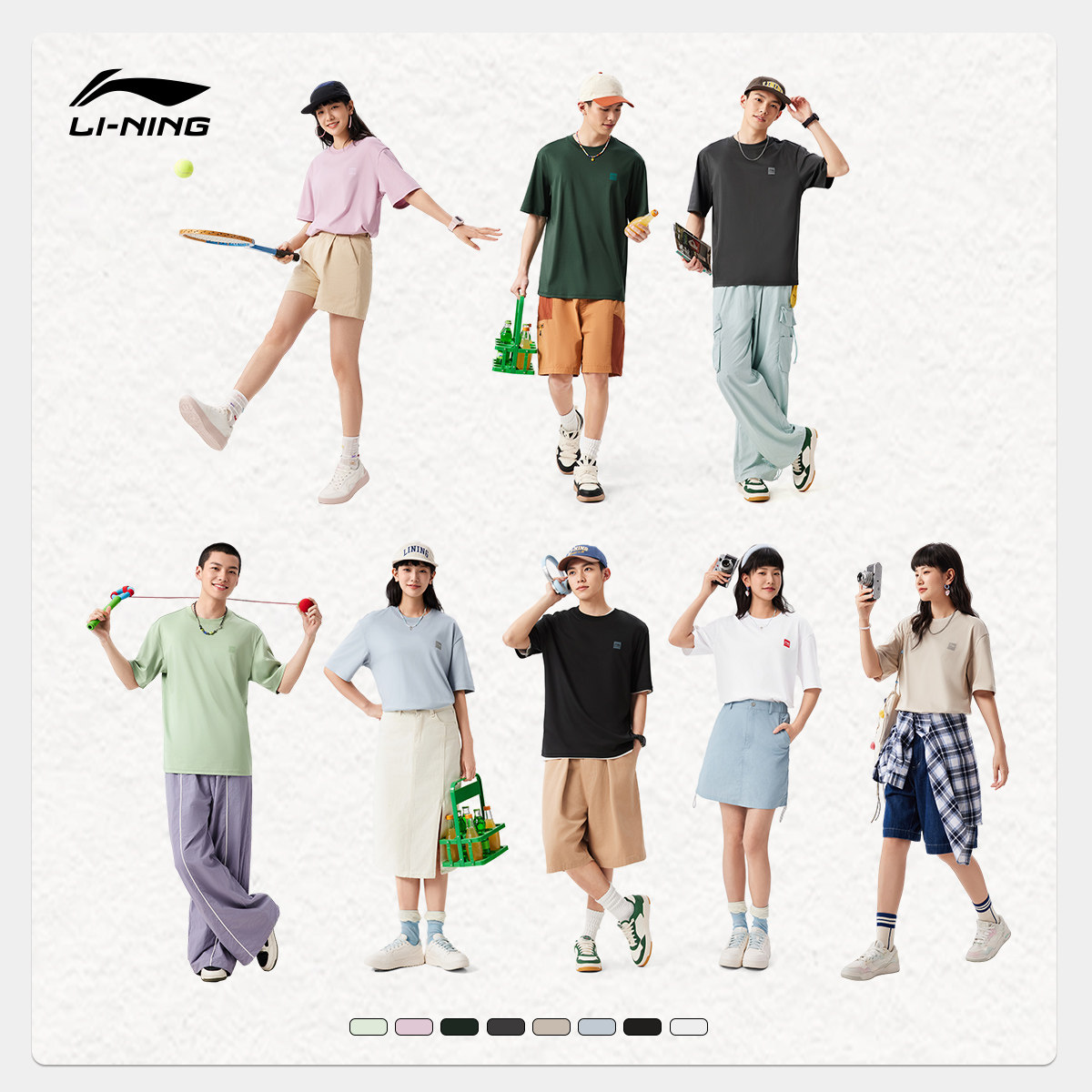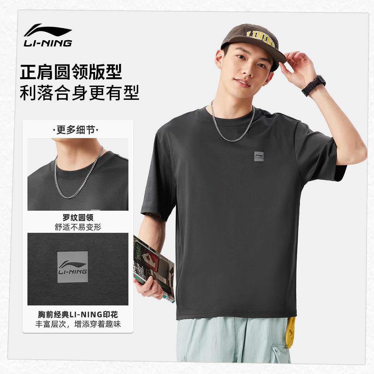 李宁短袖男士官方春夏半袖简约情侣装黑色体恤纯棉白色运动T恤女