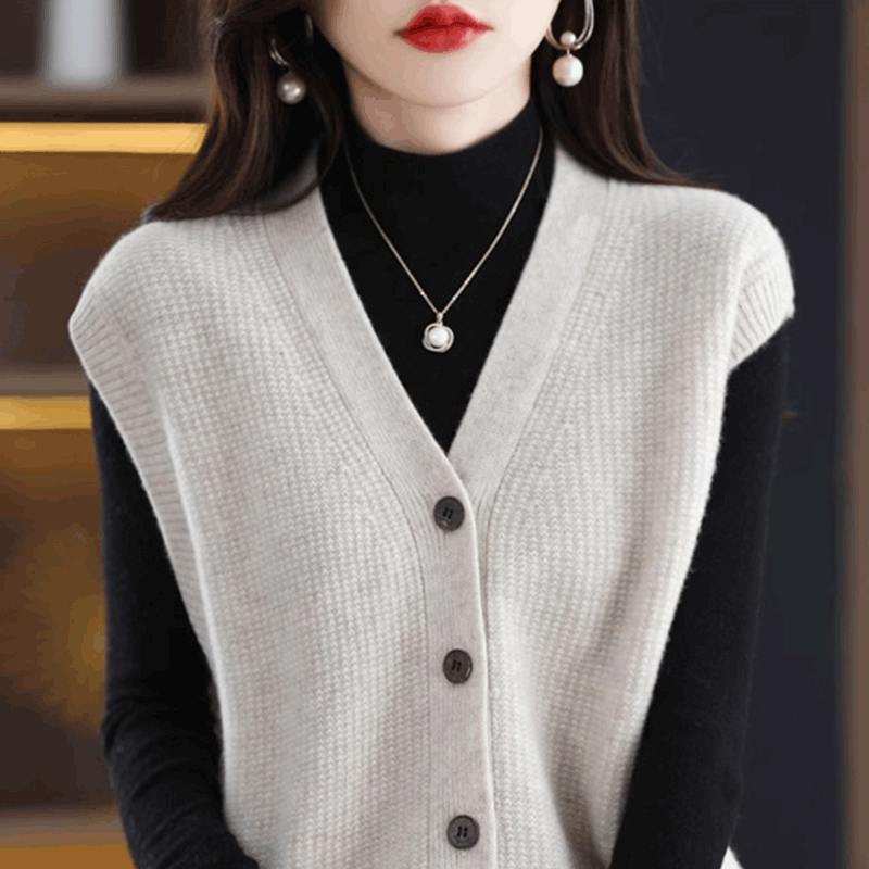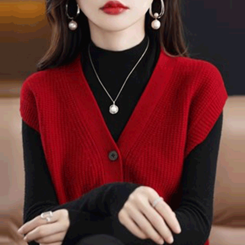 撤标撤柜(A)马甲背心外套女春秋款V领百搭女装秋冬针织开衫毛衣