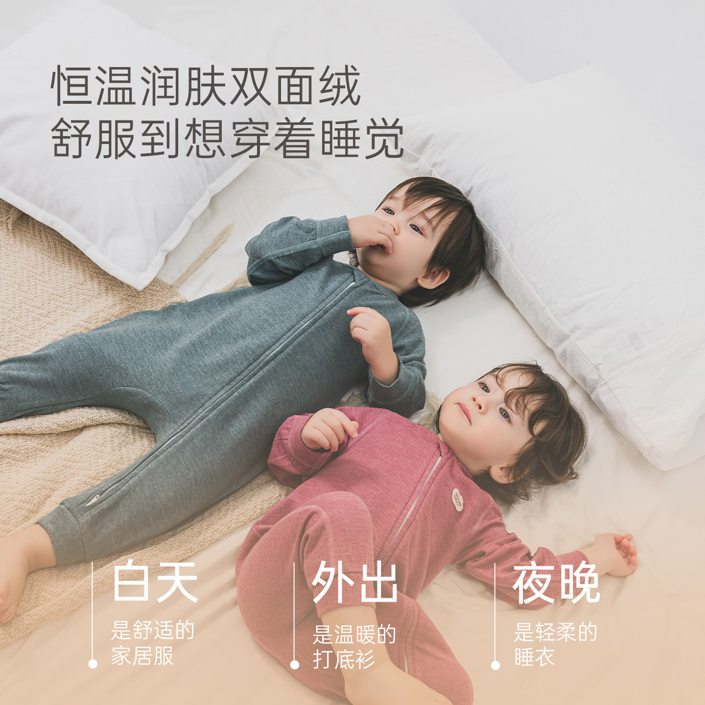 婧麒婴儿衣服秋冬德绒连体衣男女宝宝发热保暖新生儿打底睡衣冬款