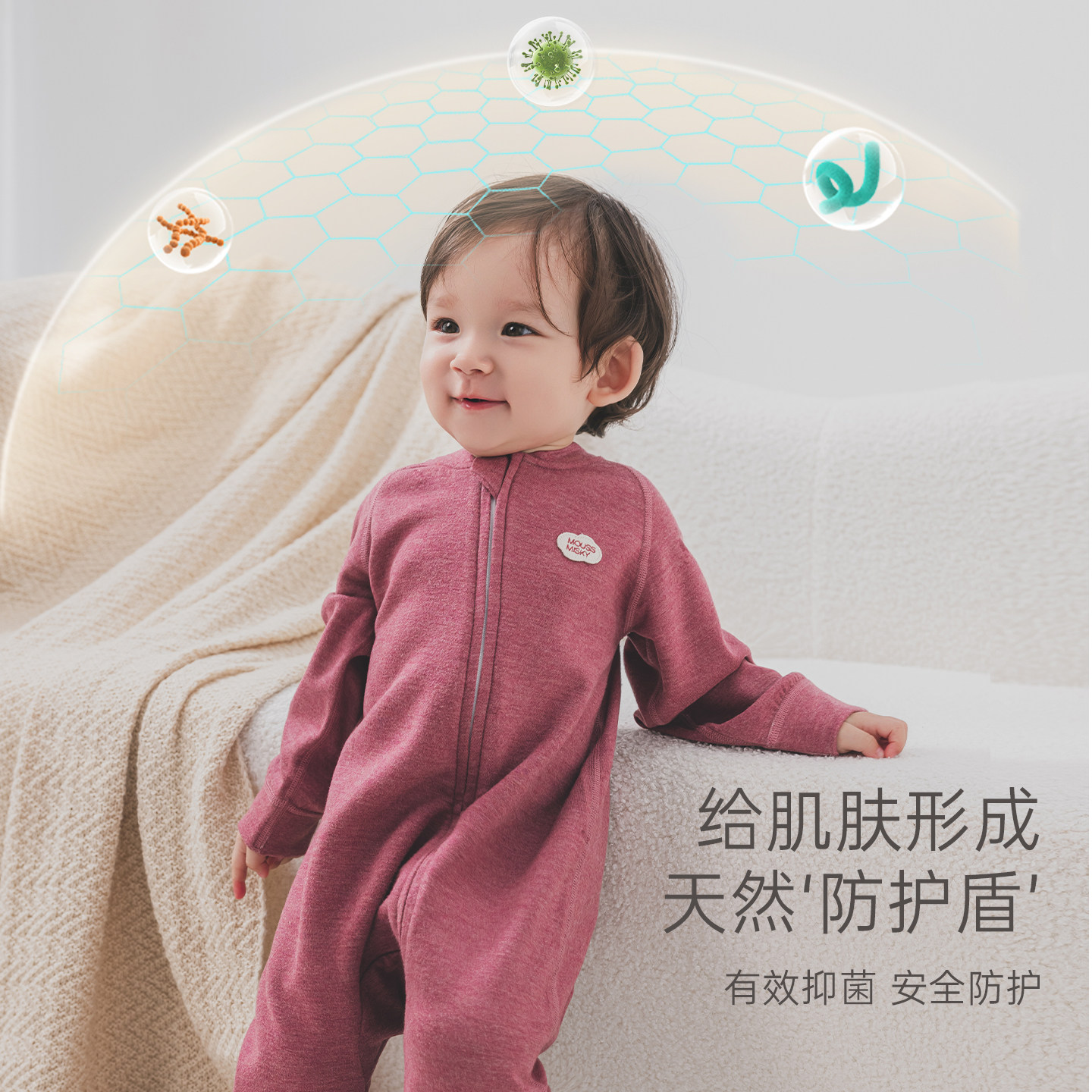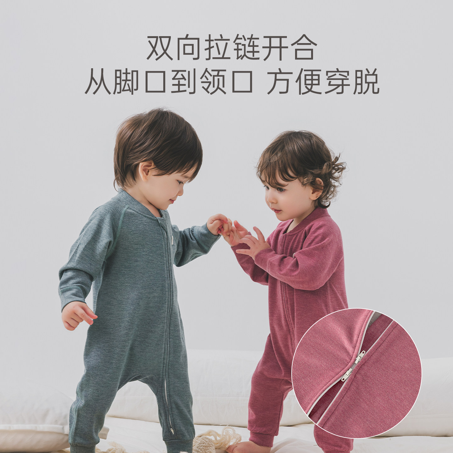 【双面绒】男女宝宝蚕丝羊毛连体衣秋冬婴儿长袖保暖拉链哈衣爬服