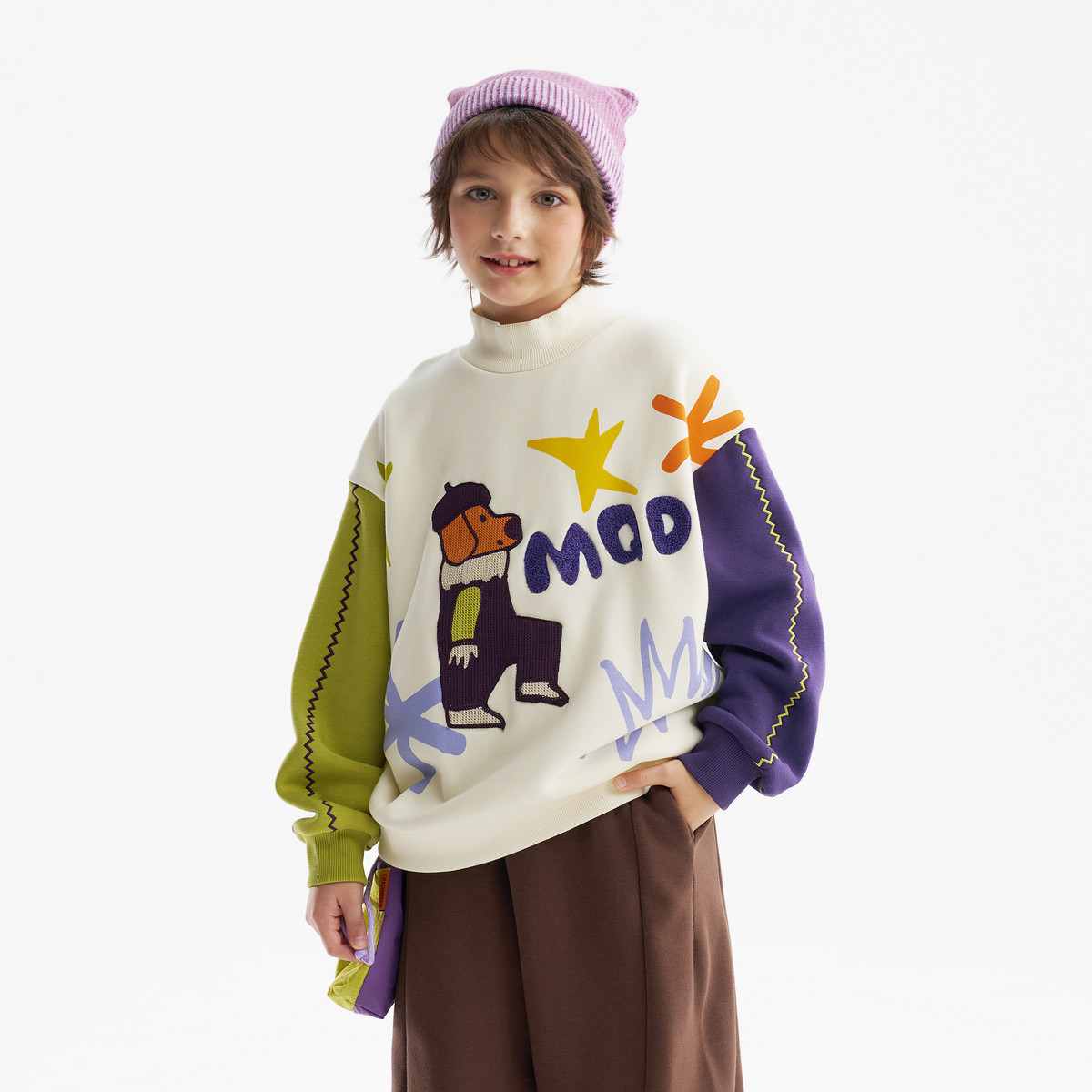 【设计师系列】MQD童装男童加绒卫衣25冬新款儿童半高领撞色上衣