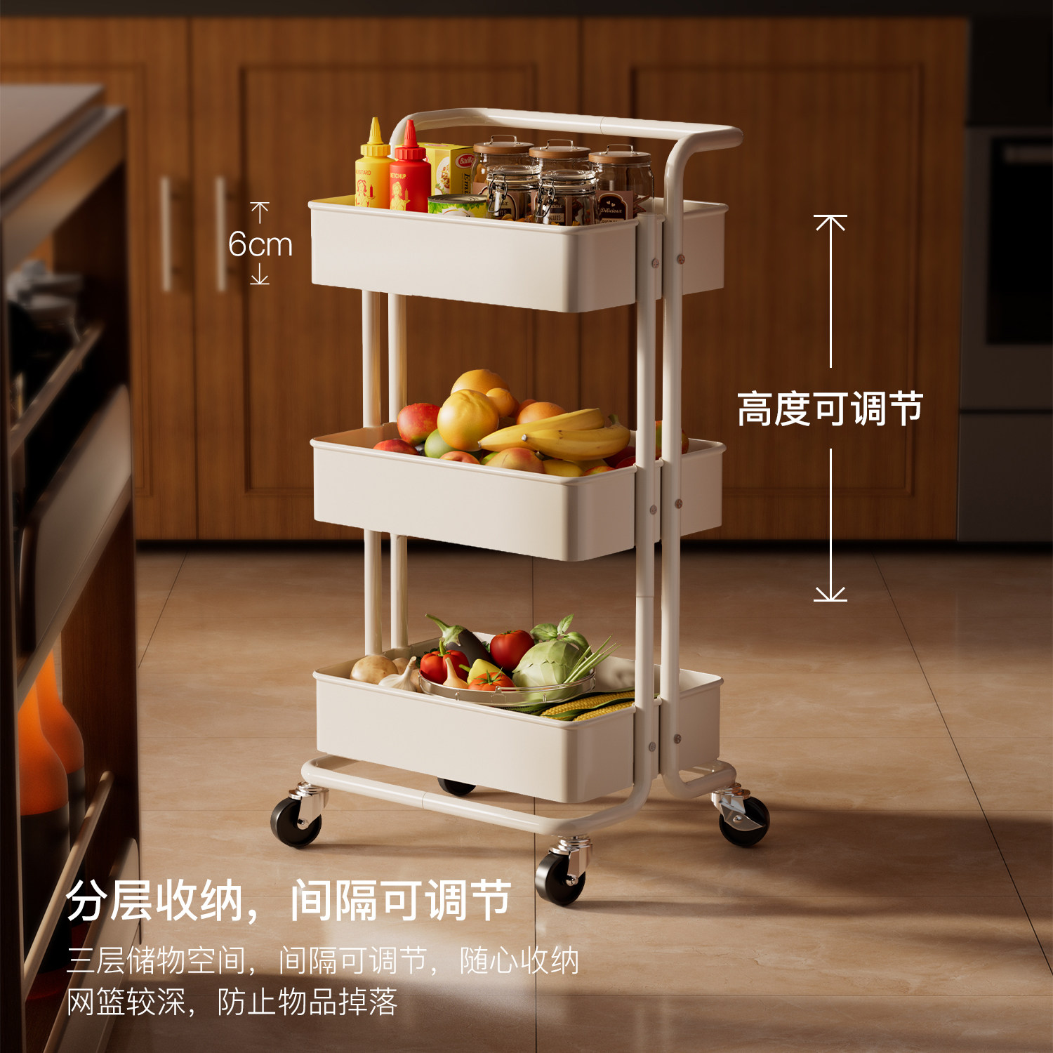 小推车置物架厨房落地多层浴室卫生间移动婴儿零食收纳储物架客厅