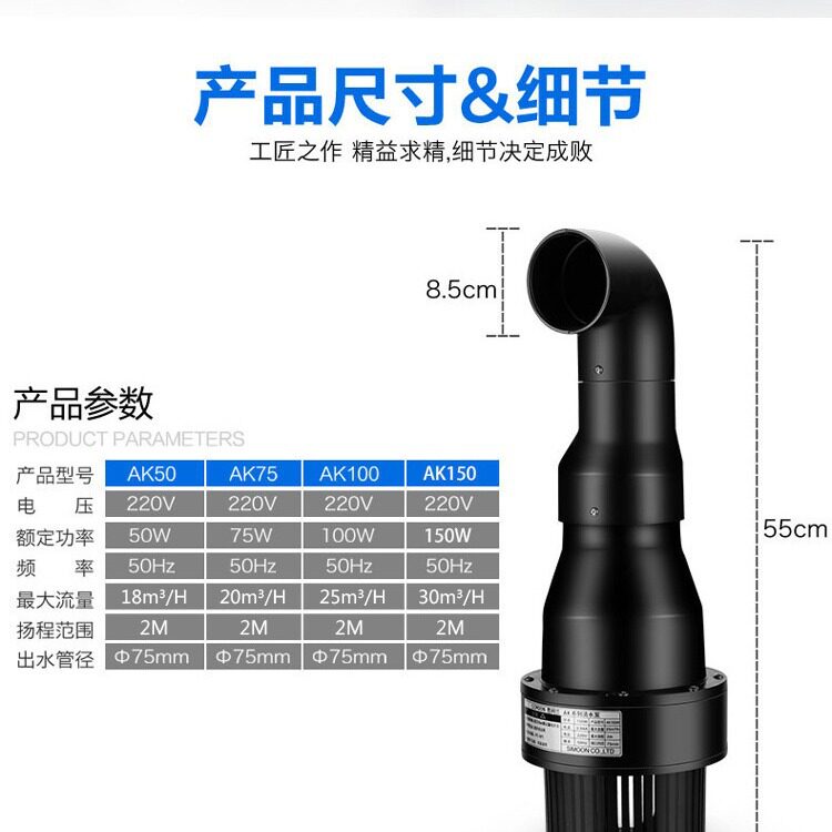 日胜潜水泵AK锦鲤鱼池大流量循环泵池塘假山水泵烟斗泵50W-150W