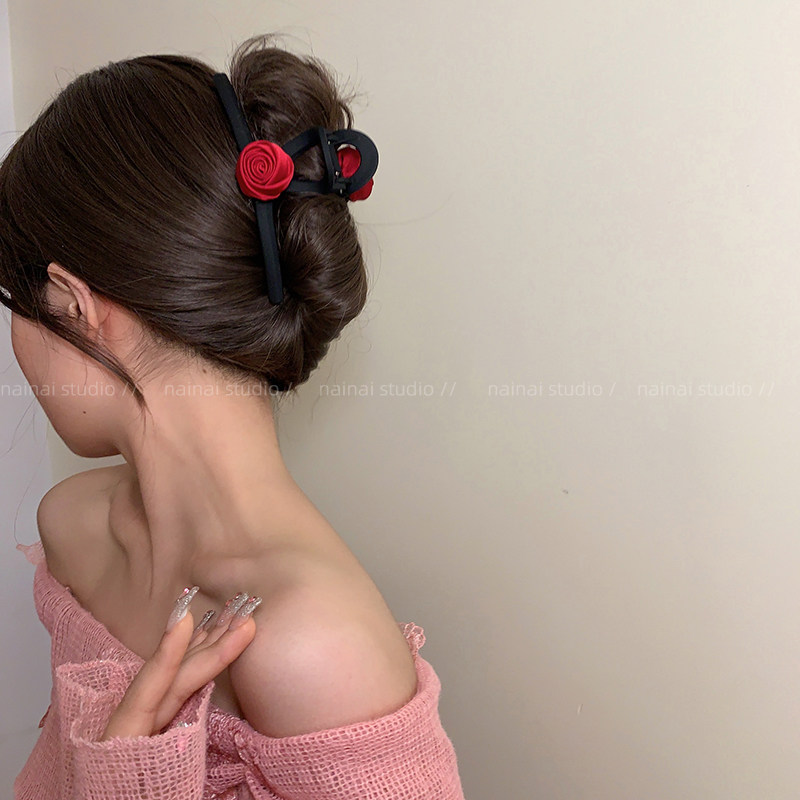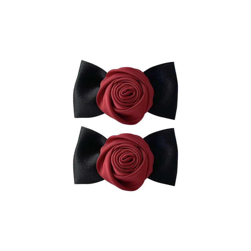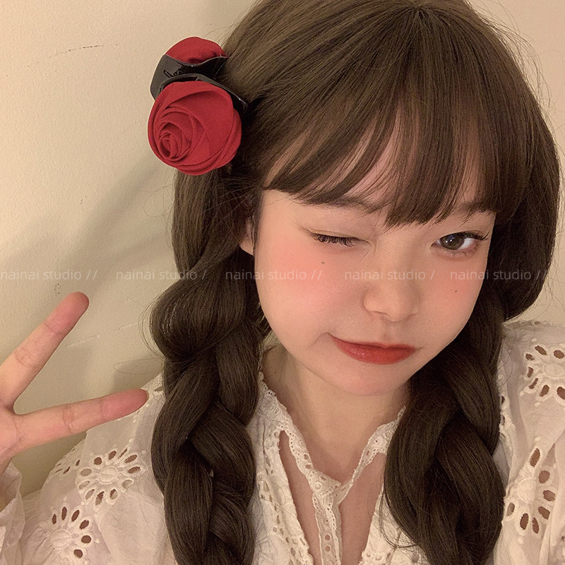 红色玫瑰花发夹~度假风海边复古法式蝴蝶结花朵发饰发圈抓夹头饰