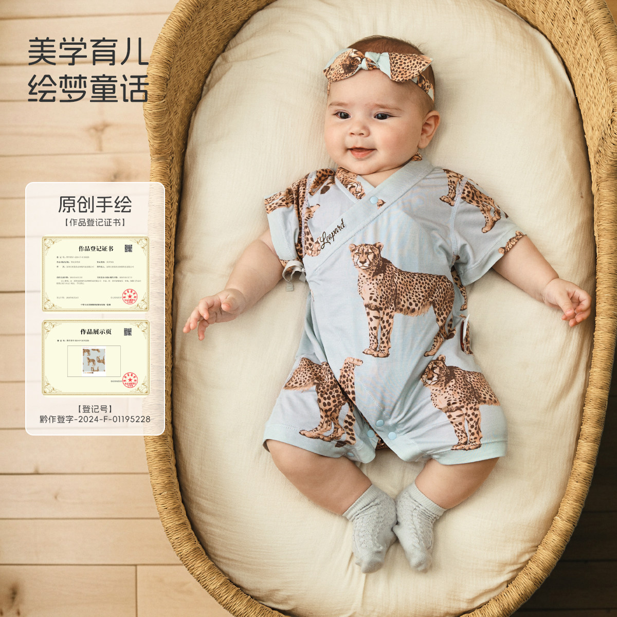 [指定暴富]aqpa新生儿婴儿衣服莫代尔夏季短袖宝宝连体衣哈衣和服