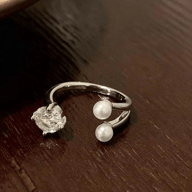 小众设计感珍珠戒指水滴锆石闪钻指环个性冷淡风开口食指戒子配饰