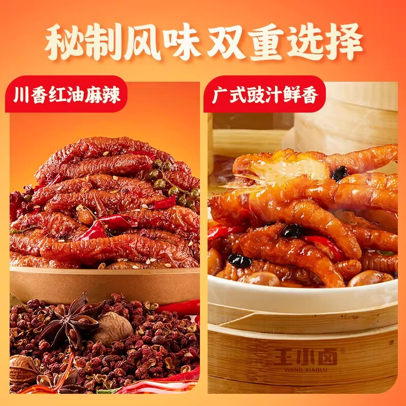 王小卤虎皮凤爪红油豉汁川香麻辣鸡爪下酒菜肉类零食300g鸡肉卤味