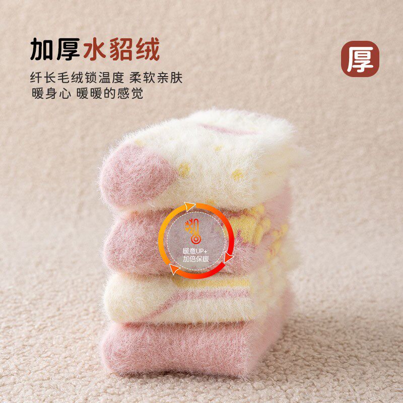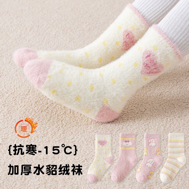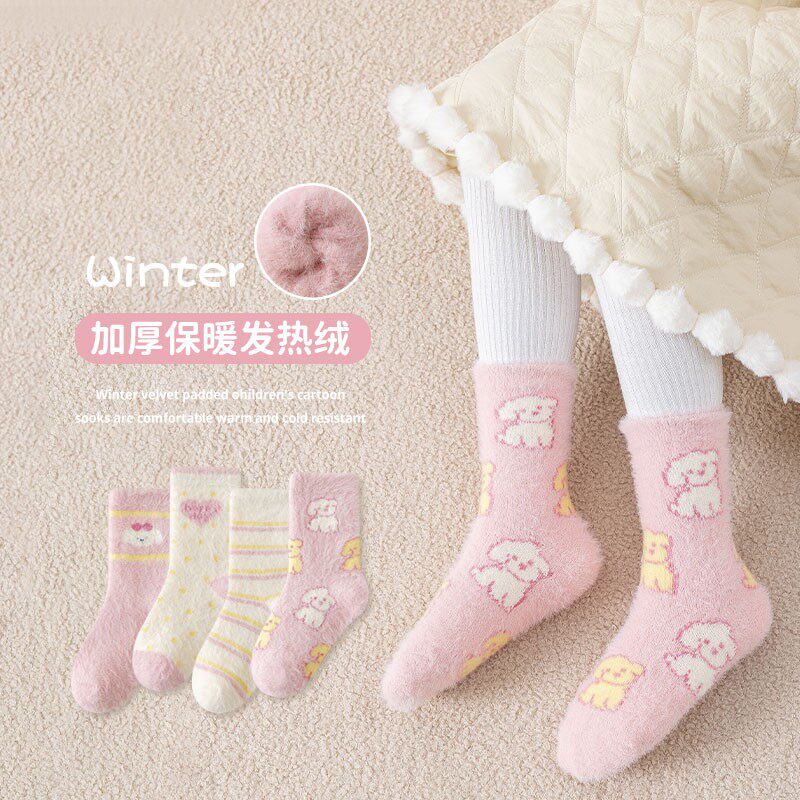 女童袜子毛圈袜加绒加厚保暖秋冬季儿童狗狗珊瑚绒水貂绒中筒毛绒