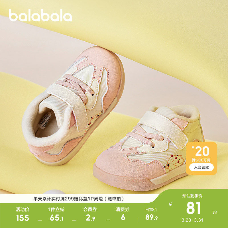 巴拉巴拉宝宝学步鞋婴儿鞋加绒防滑男宝女宝舒适秋冬鞋子可爱潮流
