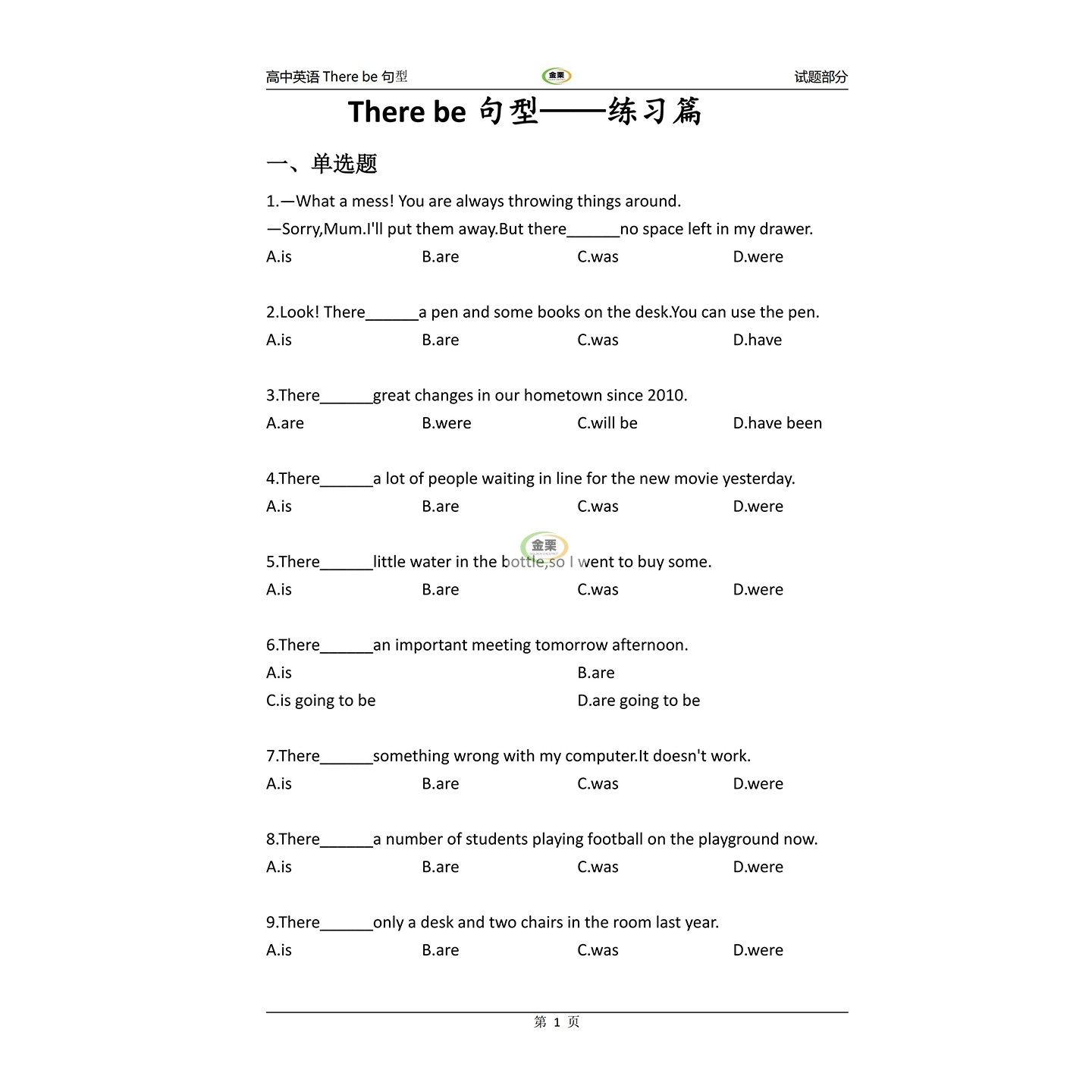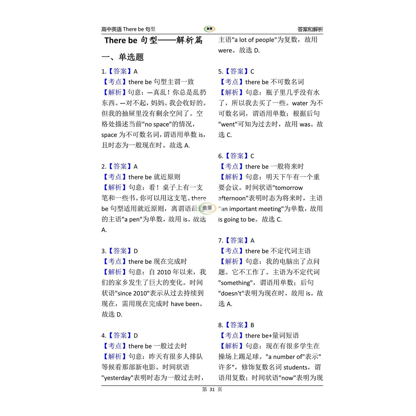 高中英语There be专项练习册含思维导图解析300题高中高考通用