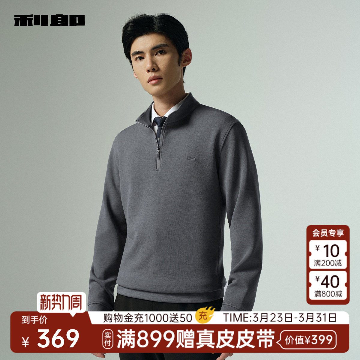 【拉链领】利郎官方含羊毛卫衣男休闲宽松半高立领春秋款新款男装