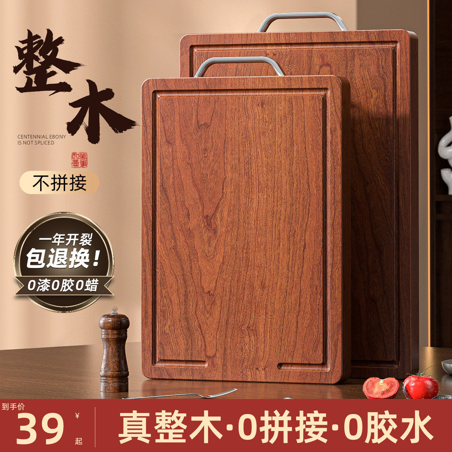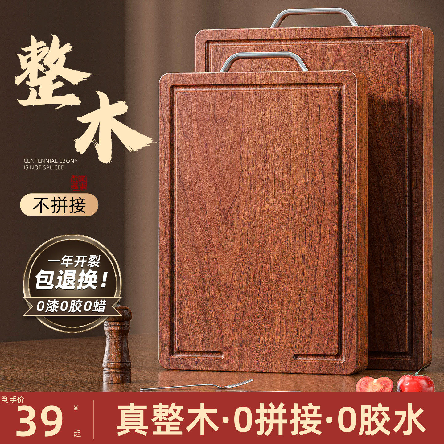 整木乌金檀木切菜板案板抗菌防霉家用食品级实木厨房专用刀粘砧板