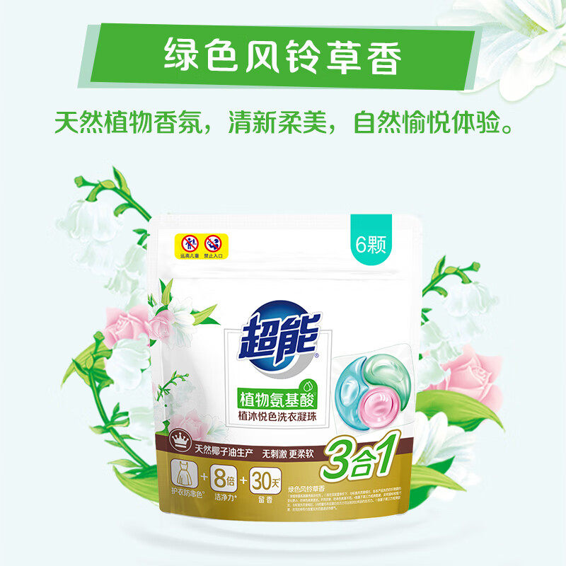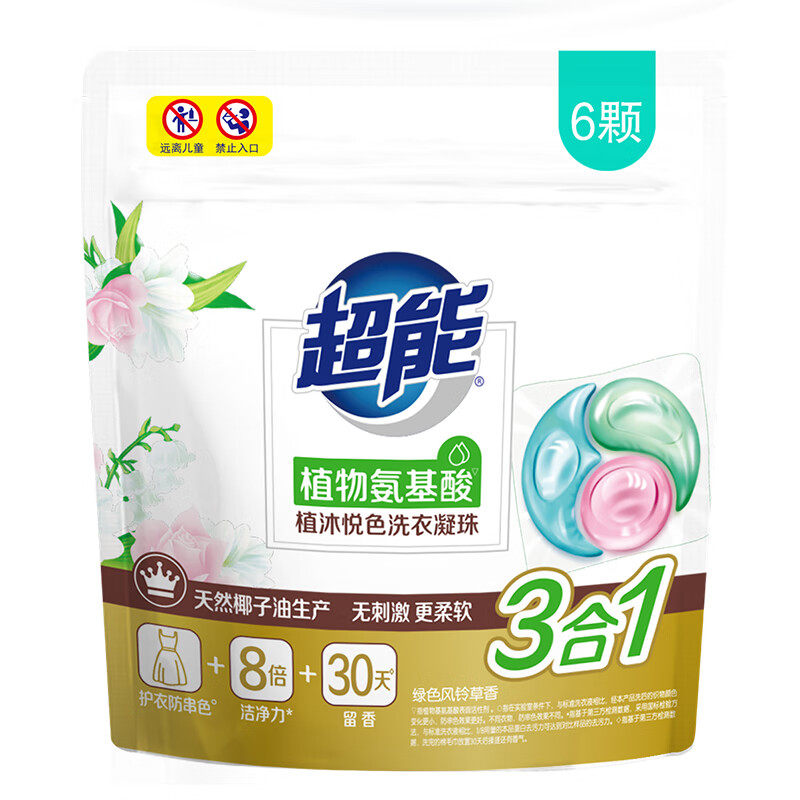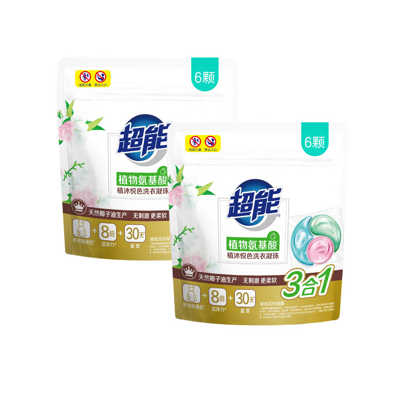 超能植沐洗衣凝珠三腔植物氨基酸6颗试用装护色袋装留香悦色