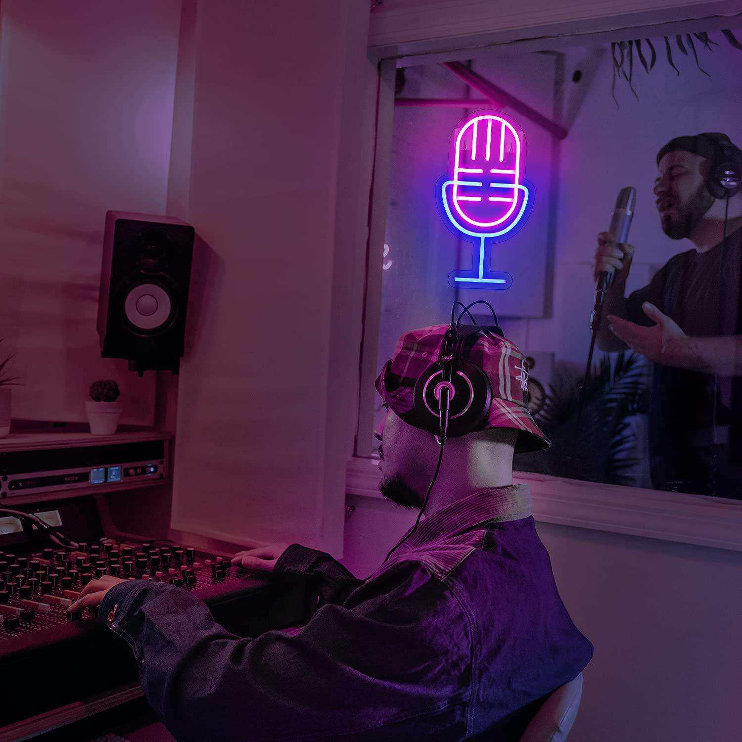 外贸亚马逊LED霓虹灯吉他语音话筒造型直播室内发光墙壁装饰道具
