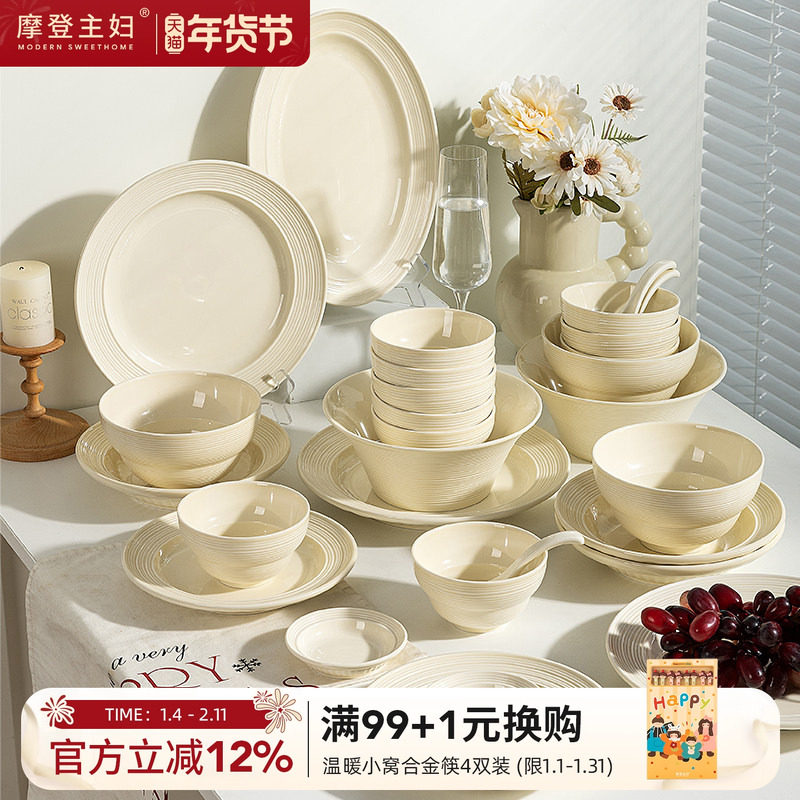 摩登主妇餐具2025新款碗具乔迁新居结婚新婚礼物碟筷碗盘套装家用