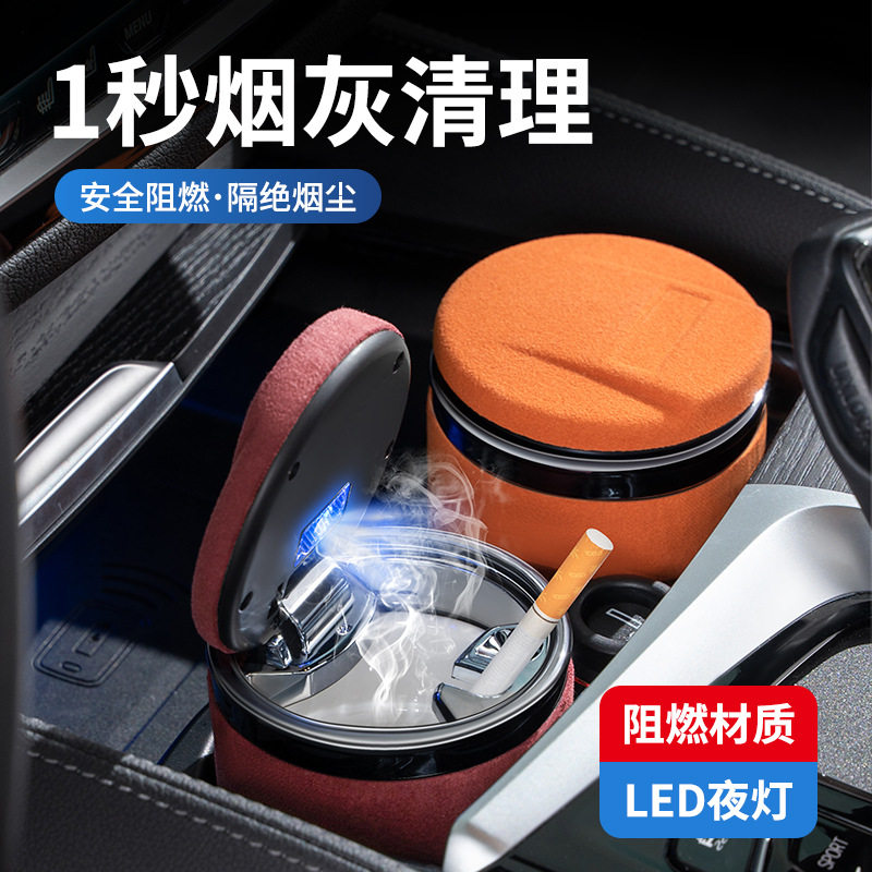 车载烟灰缸适用奔驰宝马奥迪车高级感翻毛皮夜光烟灰缸防飞灰神器