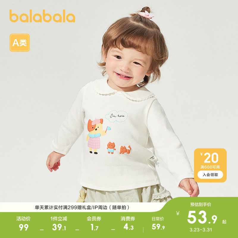 巴拉巴拉童装宝宝上衣婴儿长袖t恤女童衣服可爱萌趣甜美翻领萌趣