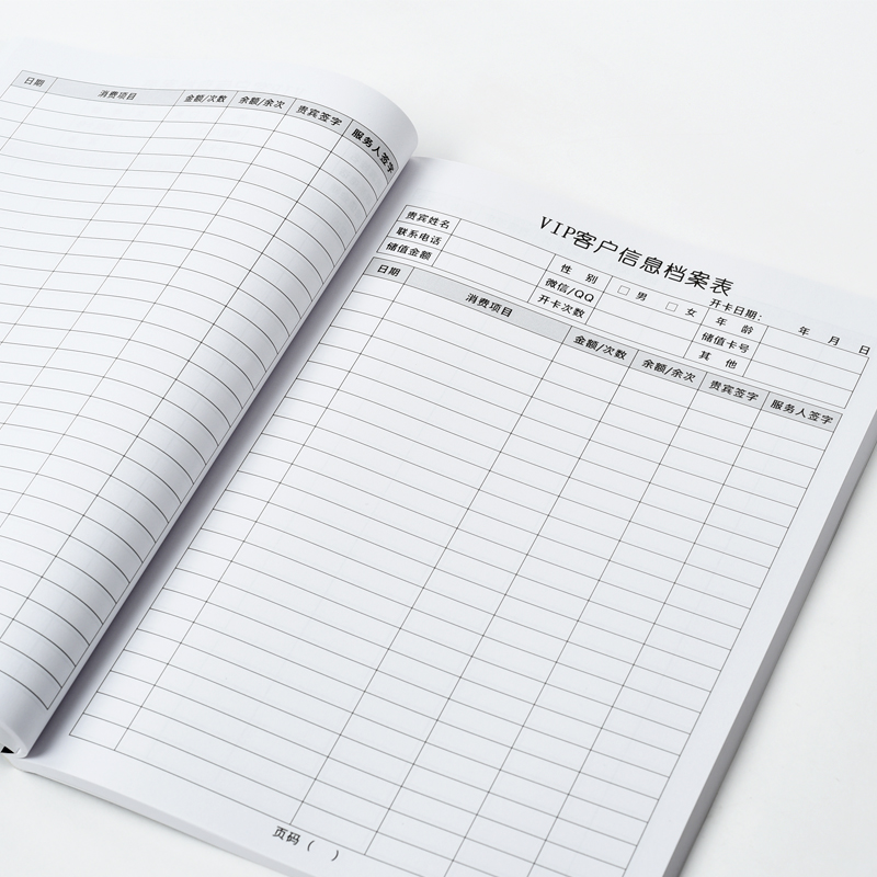 美容院顾客档案本养生护理记录消费表会员客户卡次登记册子A4定制