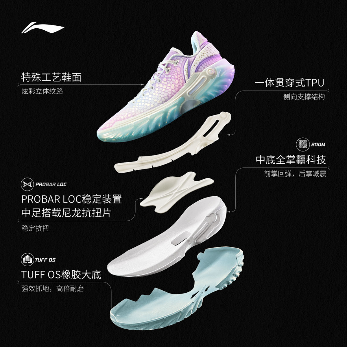 李宁利刃6V2黑曜石 | 篮球鞋男女同款青少年专业实战缓震运动鞋