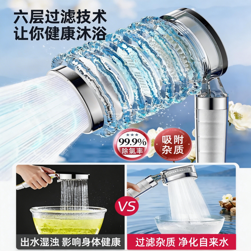 娜拉之夏过滤花洒净化四重净水除氯抑菌滤芯太空环强增压淋浴喷头