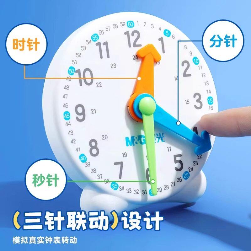 晨光钟表模型小学生教具一二年级小学生学习认识时间12/24小时三针联动数学时钟教具钟面学具儿童专用学习钟
