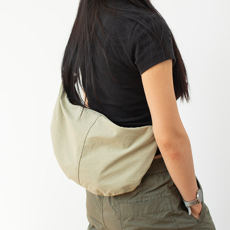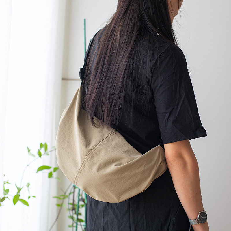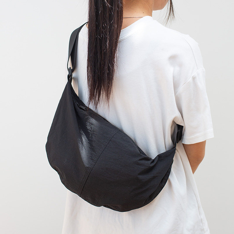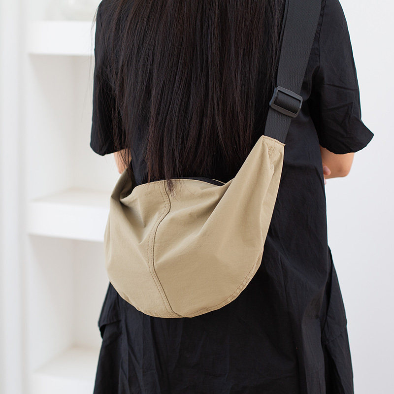 日系简约斜挎包女士饺子包宽肩带尼龙单肩包运动休闲防水月亮布包