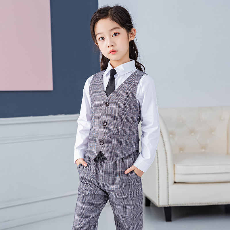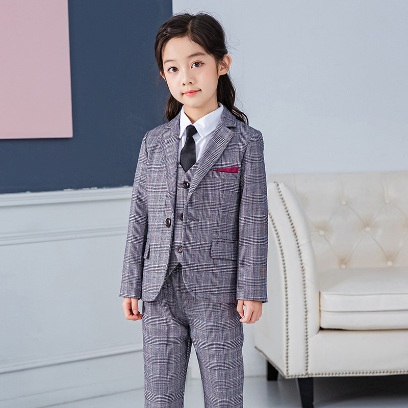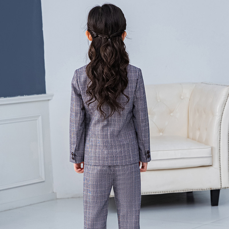 女童西装套装格子演出西服学生小主持人礼服钢琴演讲女孩周岁礼服