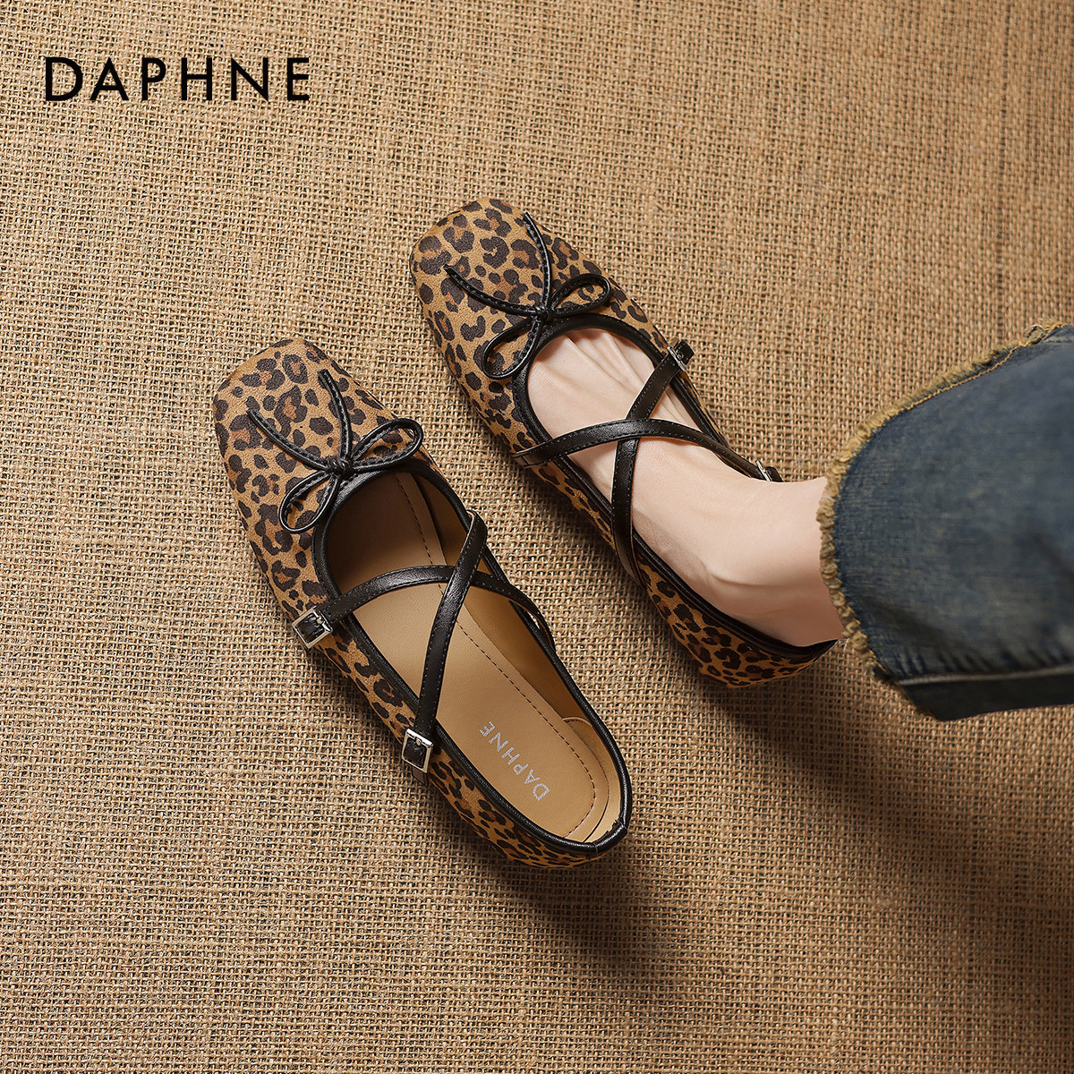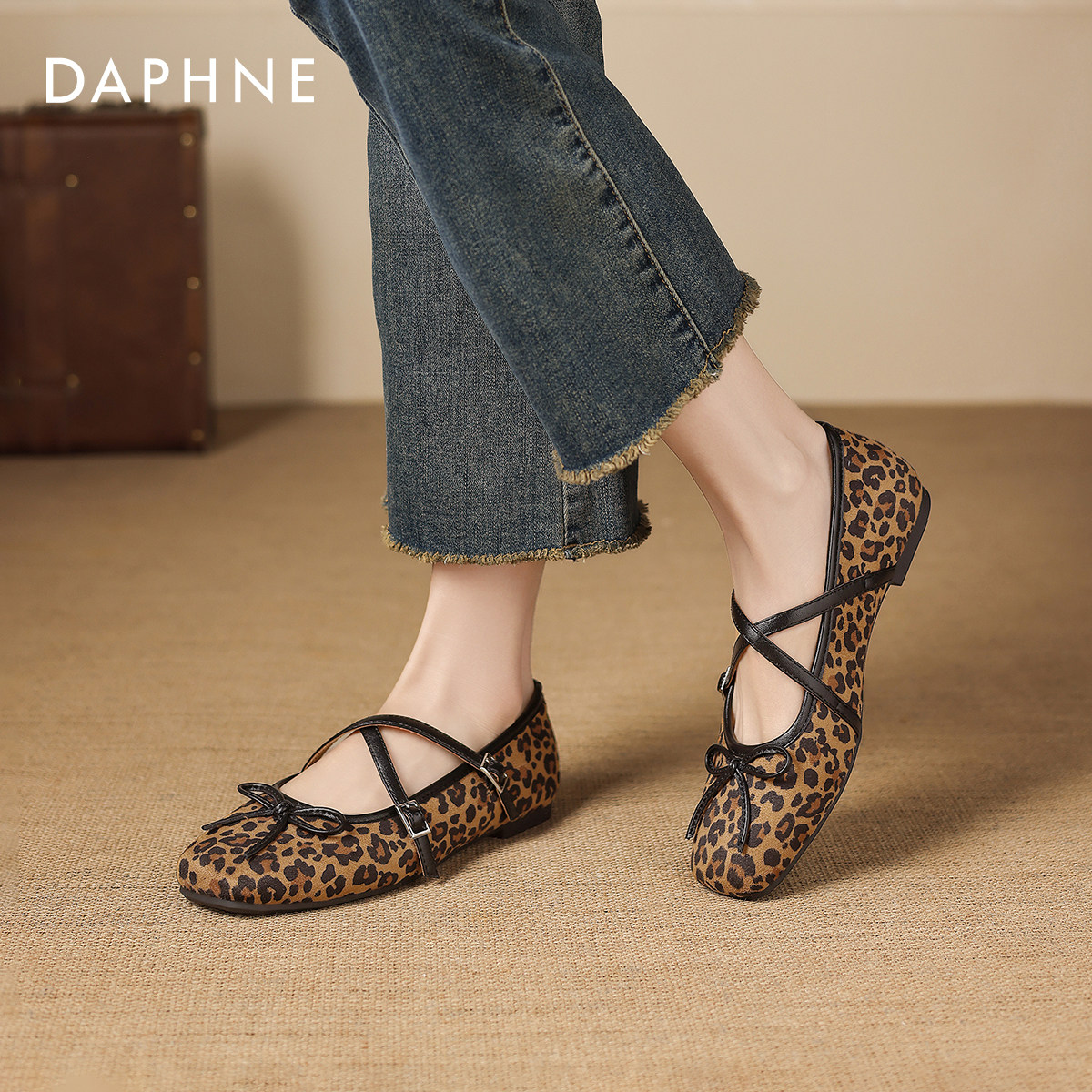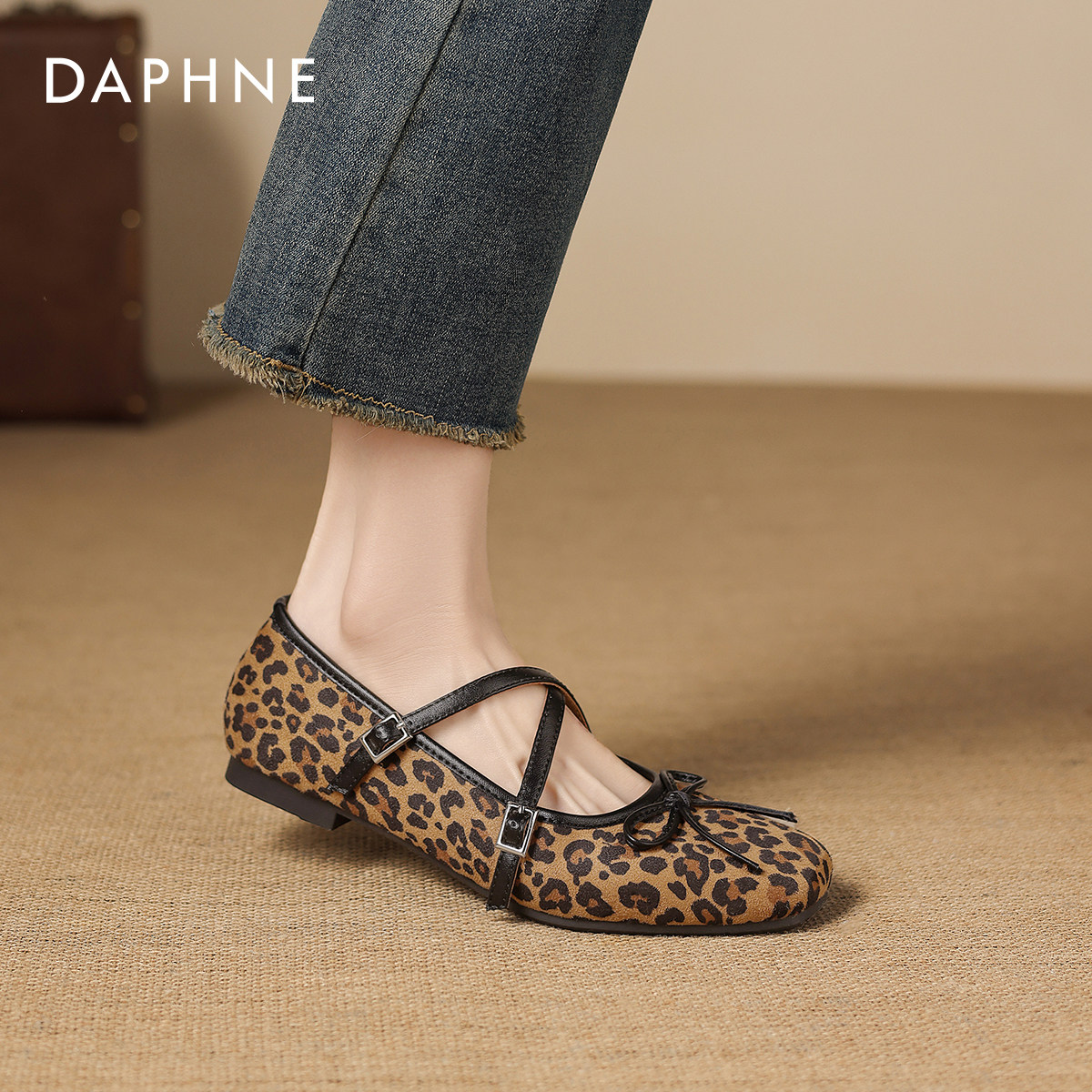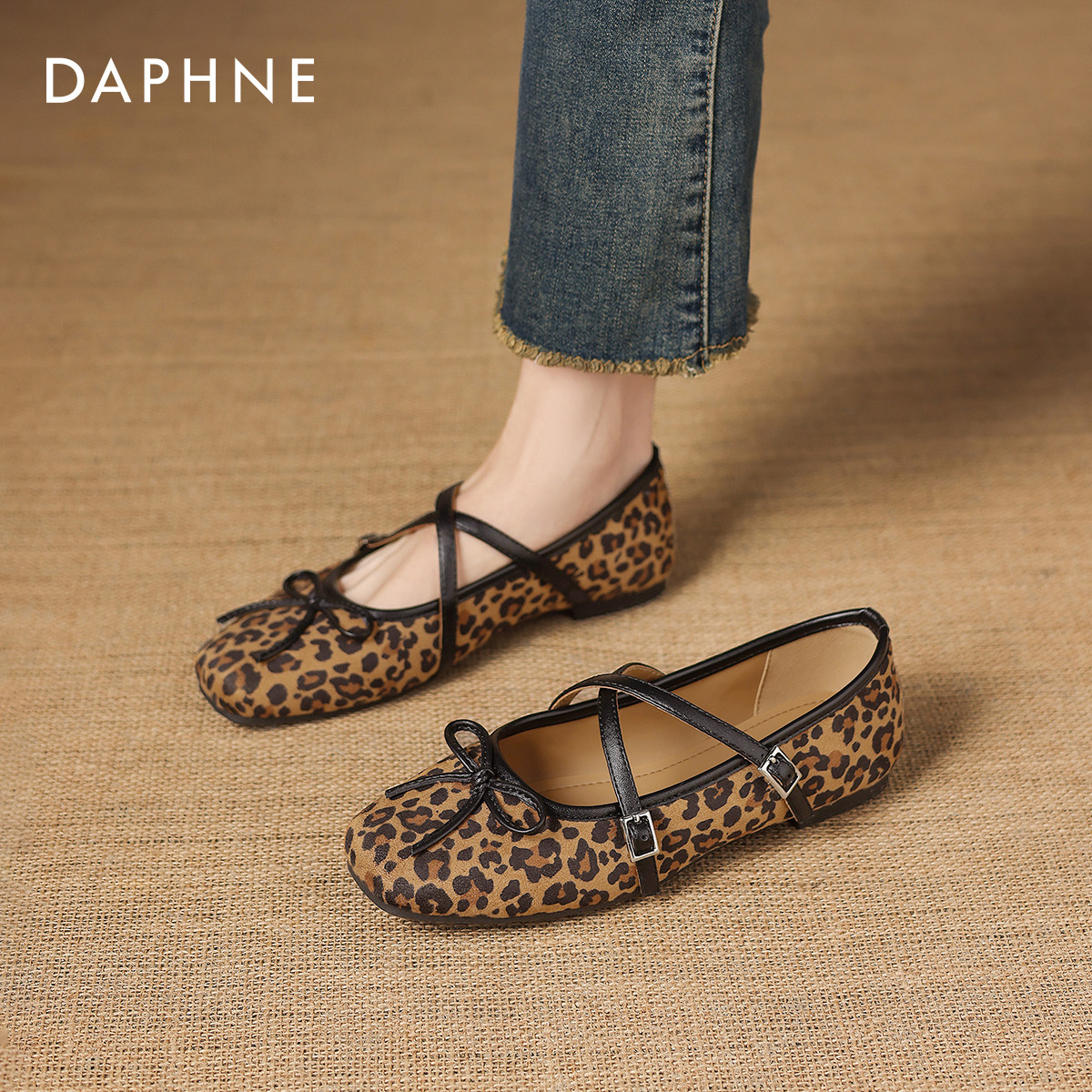 达芙妮豹纹平底单鞋女2026新款春季法式玛丽珍女鞋软底芭蕾鞋瓢鞋