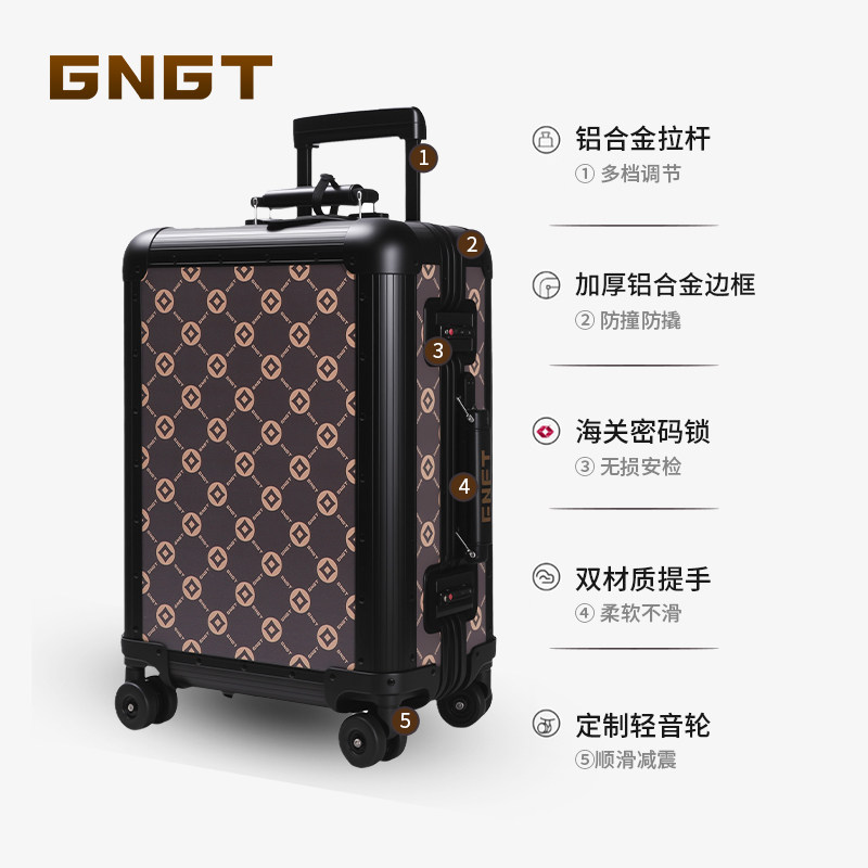 GNGT国风铜钱全铝镁合金行李箱商务登机箱拉杆箱旅行箱铝合金金属