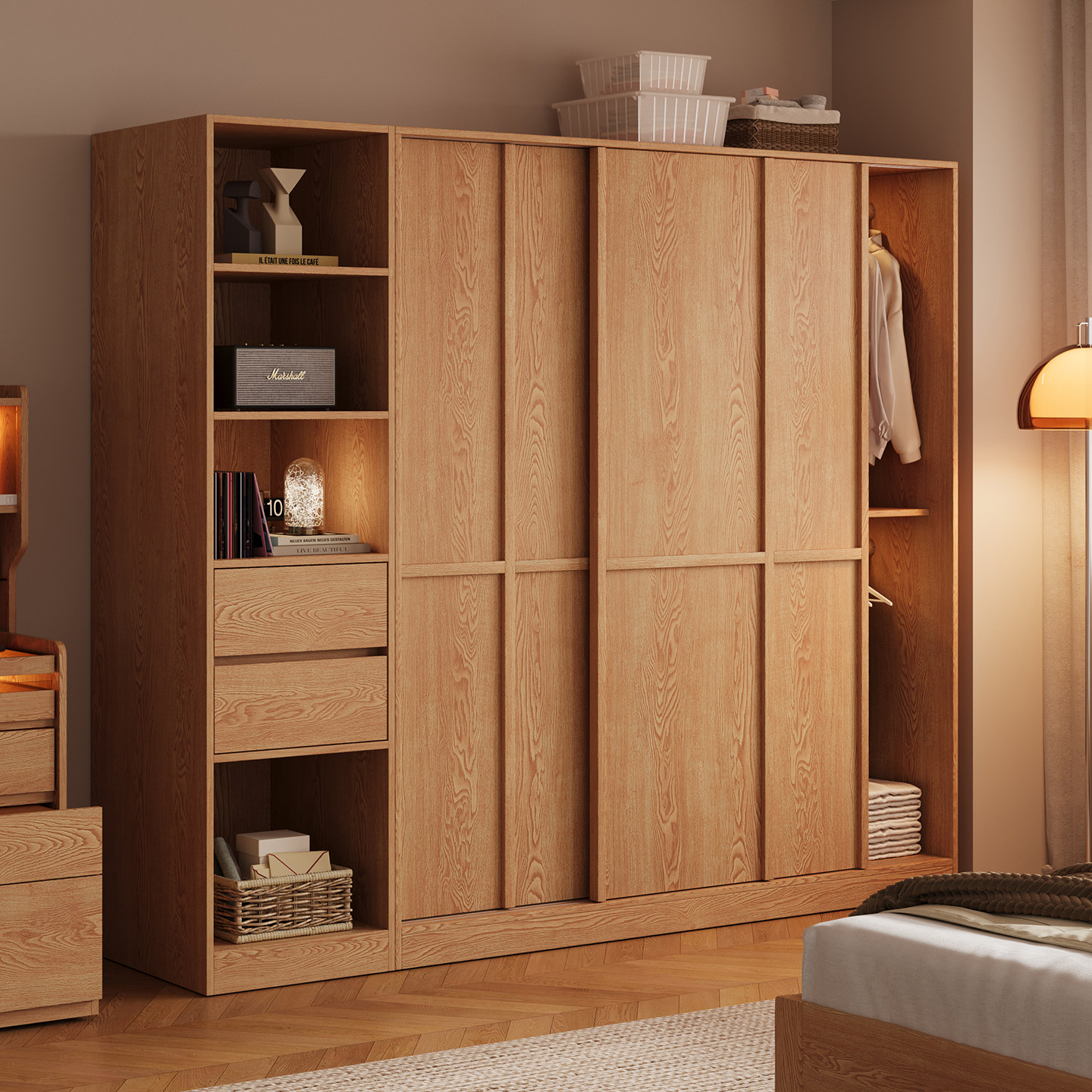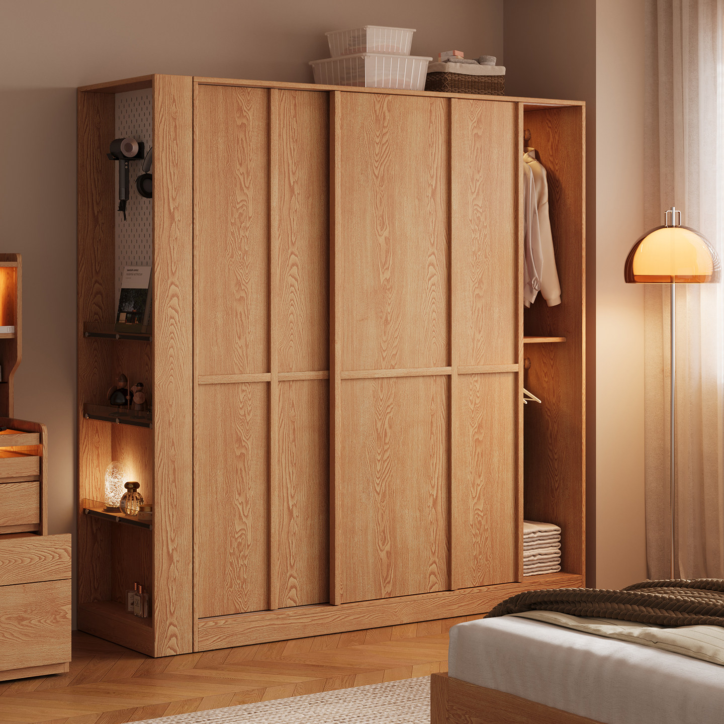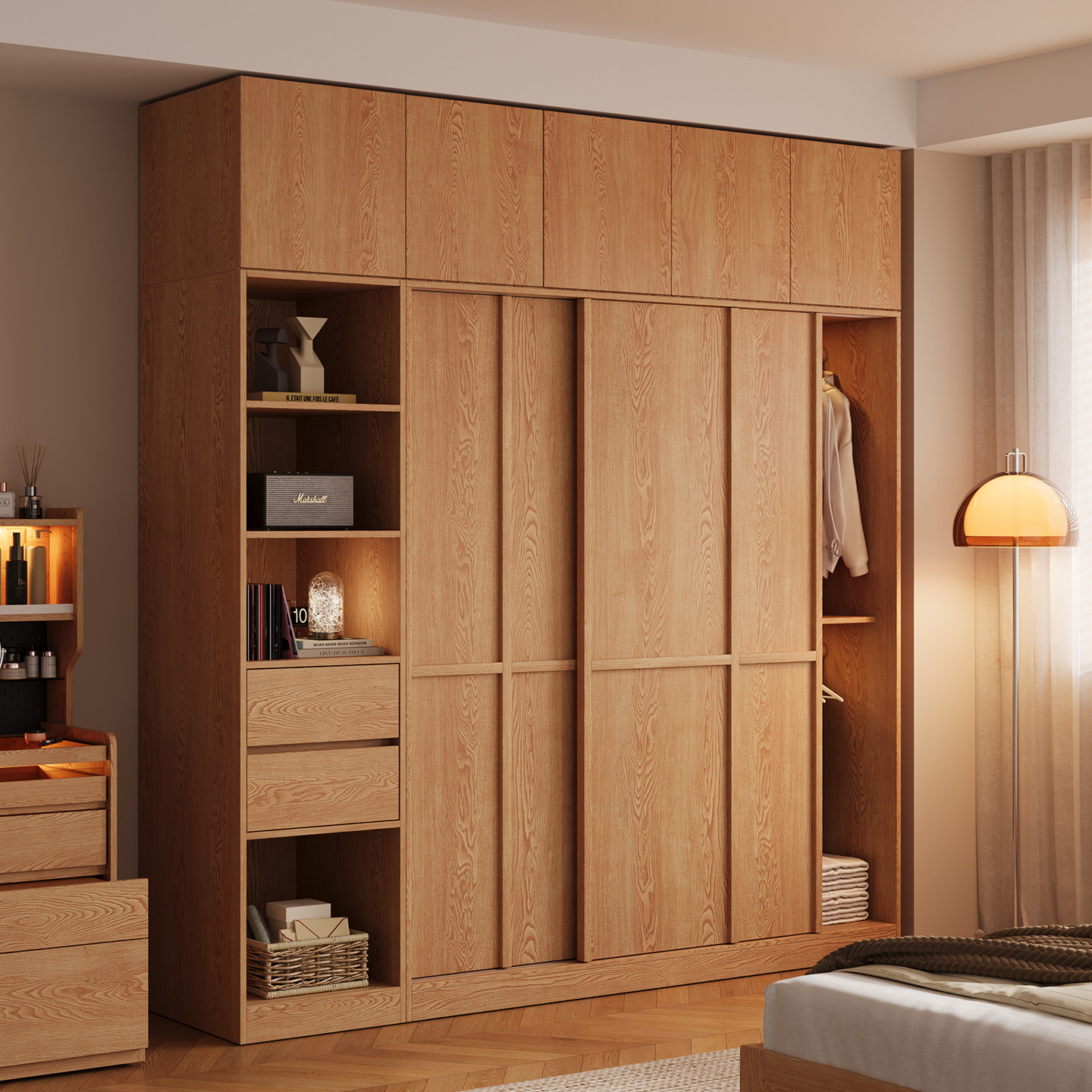 木兜家具格序衣柜中古风主卧室家用实木大衣橱复古风推拉门衣柜子