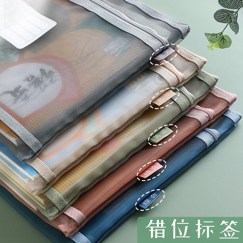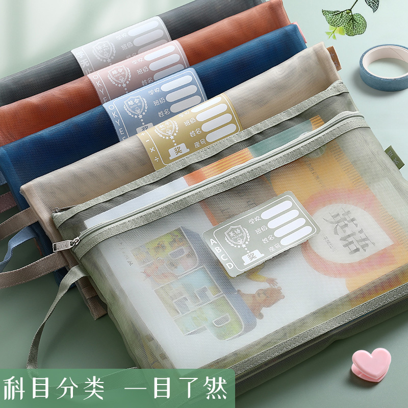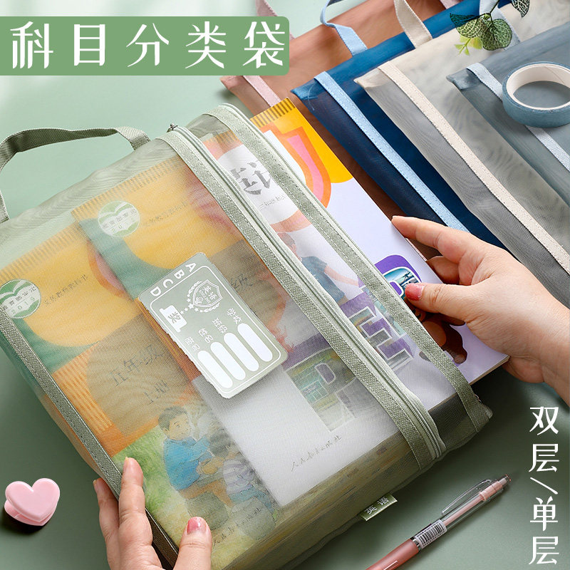 学科科目袋分类文件袋拉链双层大容量学生作业袋透明网纱A4资料袋