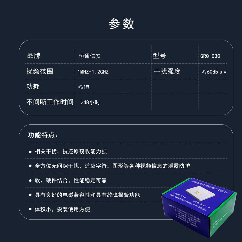 恒通信安GRQ-03C计算机相关干扰器电脑电磁视频干扰仪微机视频信息泄漏保护器