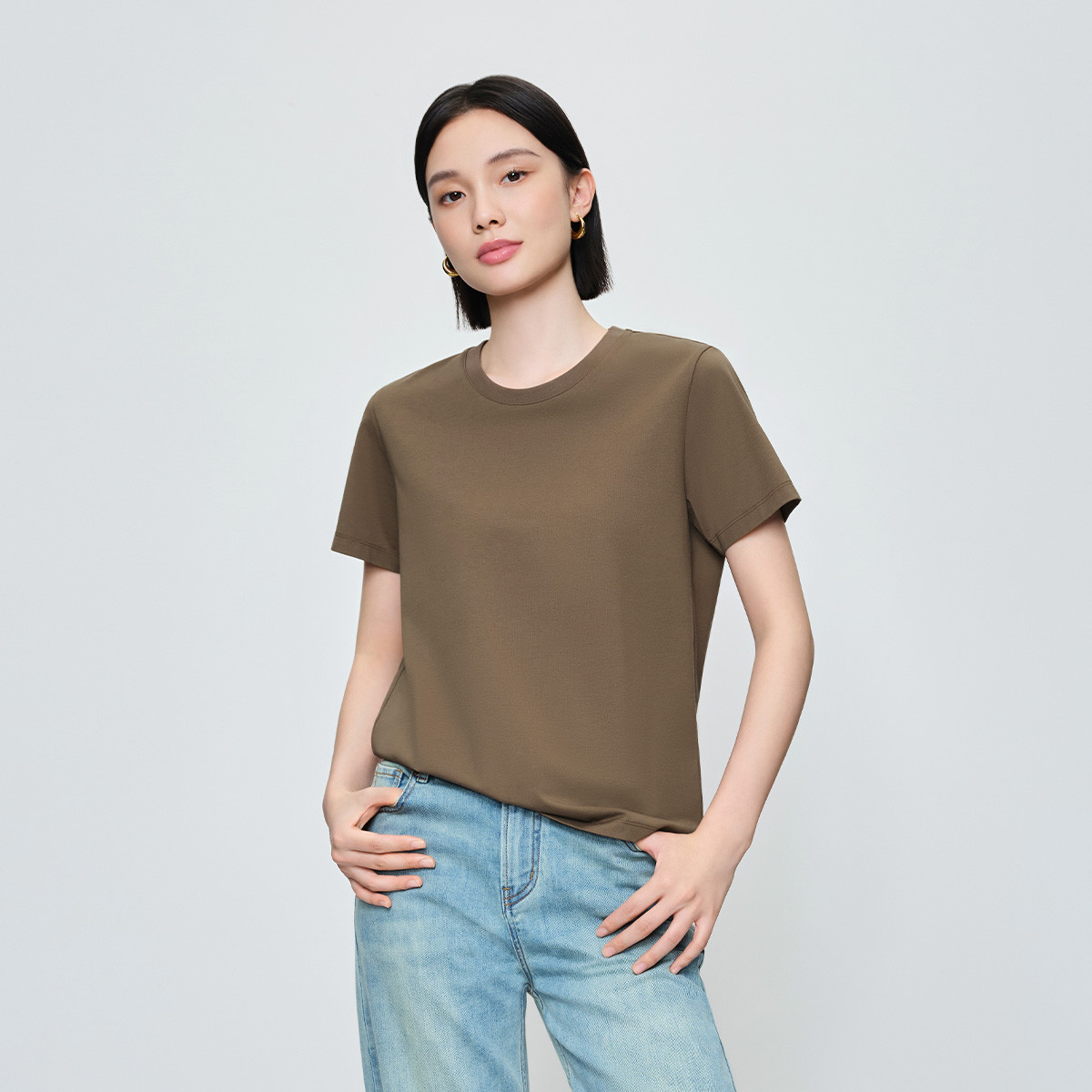 陈都灵丨凉感T森马短袖T恤女修身纯色基础夏季新款圆领白色女装