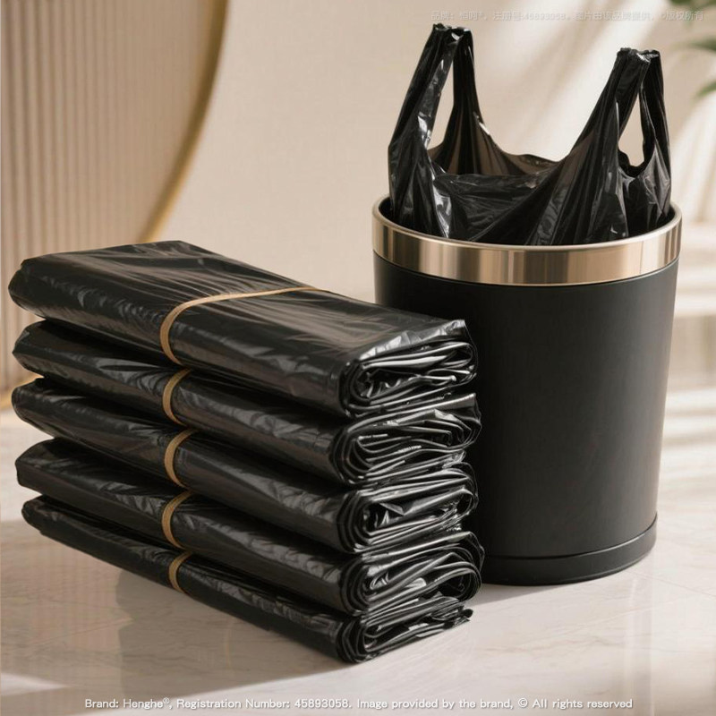 e洁垃圾袋手提背心式家用加大号一次性塑料袋黑色厨房清洁袋100只