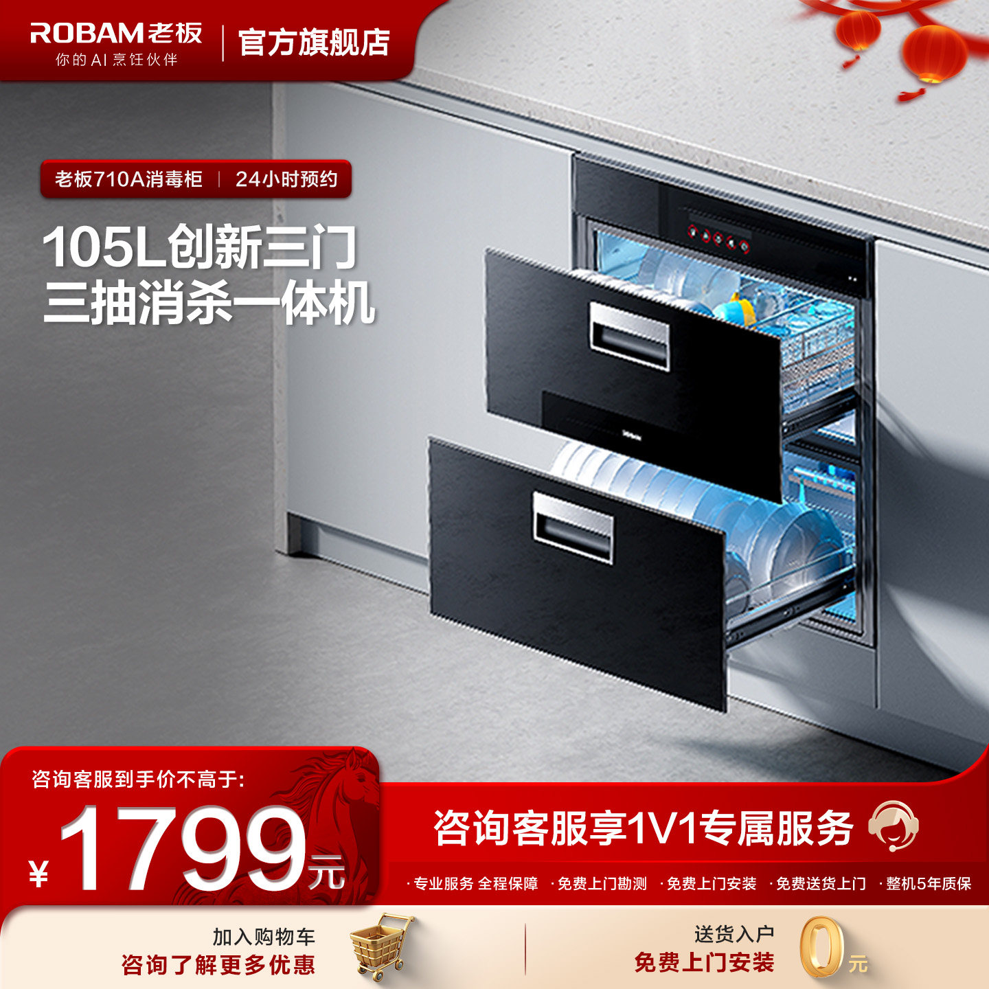 老板710消毒柜家用小型厨房嵌入式碗筷杀菌0臭氧消毒官方旗舰店