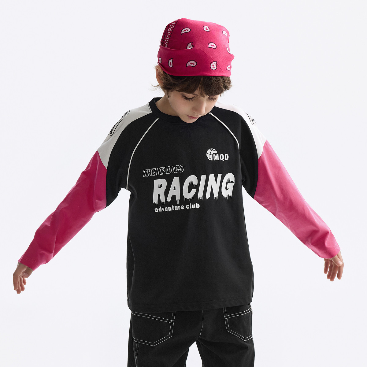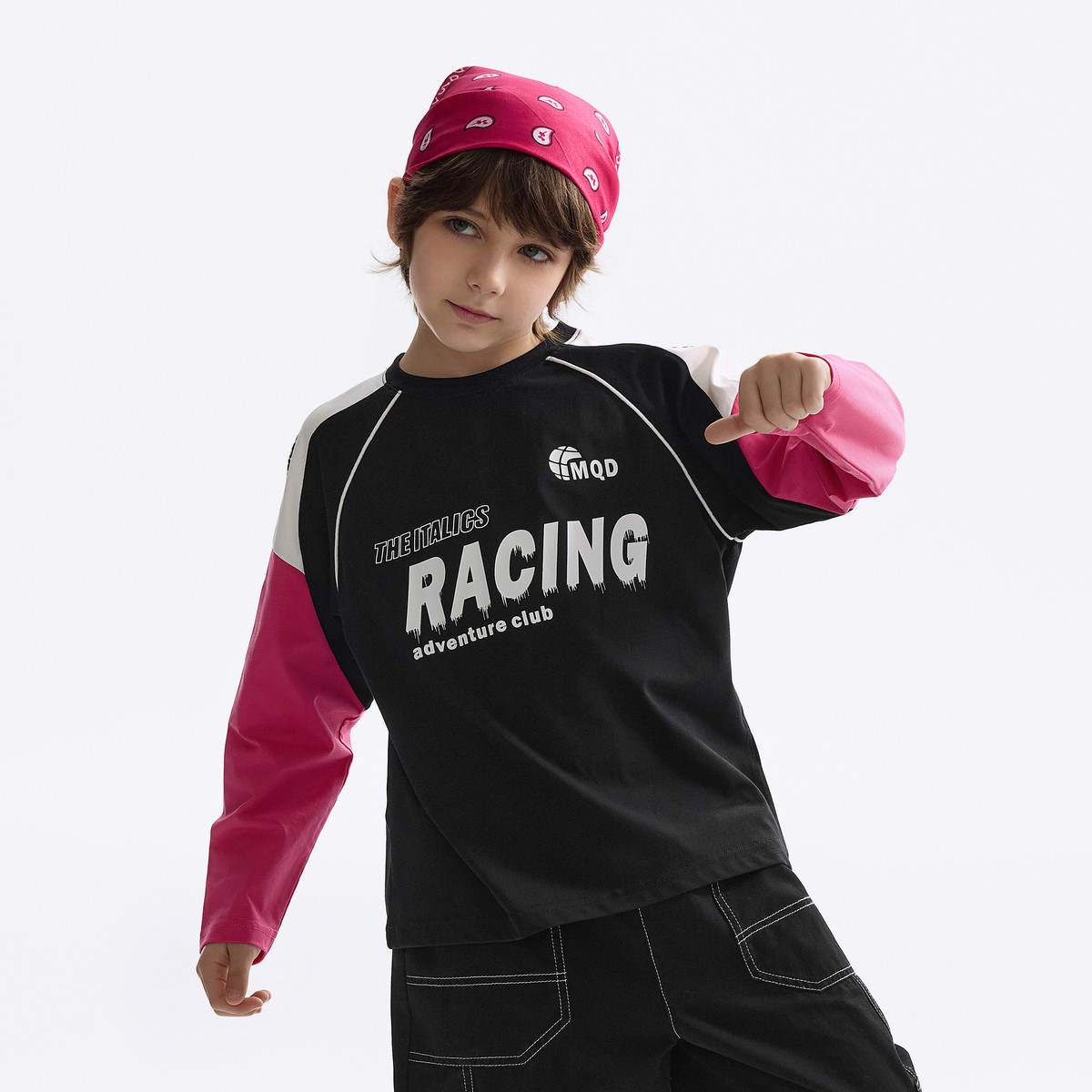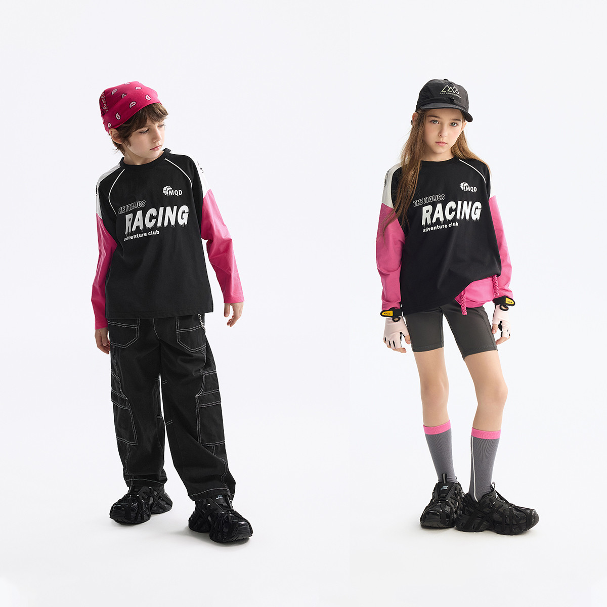 MQD童装男童长袖t恤2025新款宝宝春装儿童打底衫撞色潮女童T恤