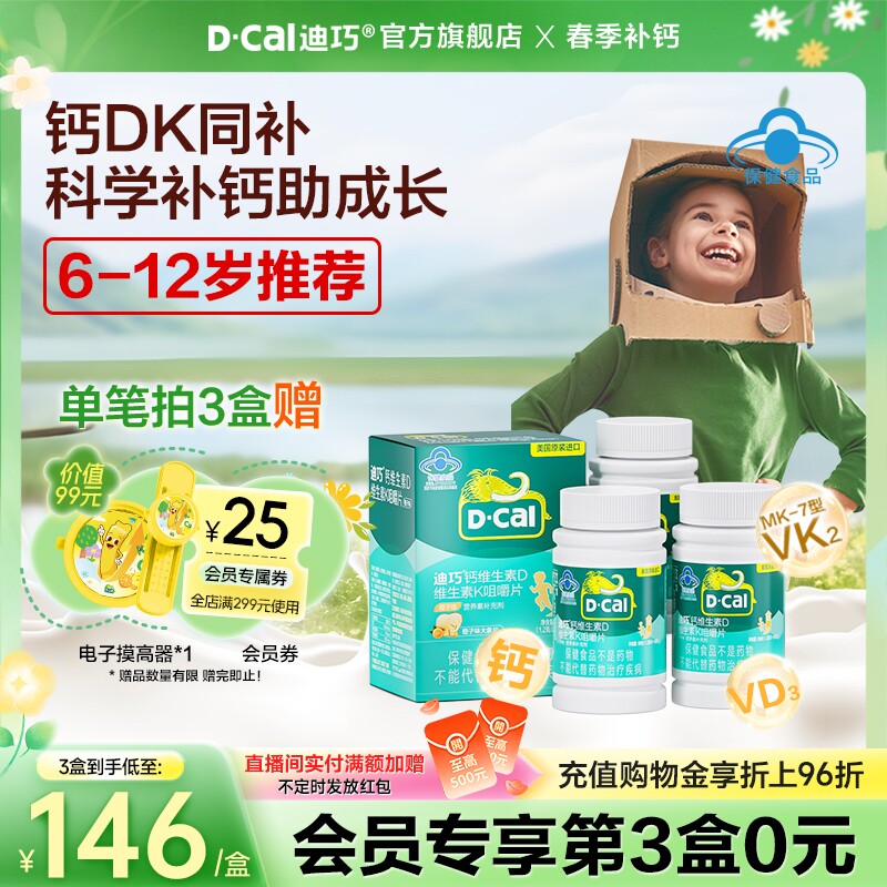 迪巧儿童钙片青少年6到12岁以上成长高维生素DK补碳酸钙官方正品