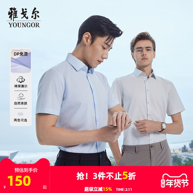 【格纹DP免烫】雅戈尔官方夏季新品商务休闲通勤衬衣短袖衬衫男