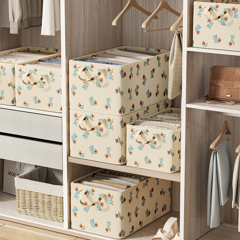 拍1发4衣服收纳筐神器布艺装衣物衣柜分层收纳箱家用框裤子整理盒
