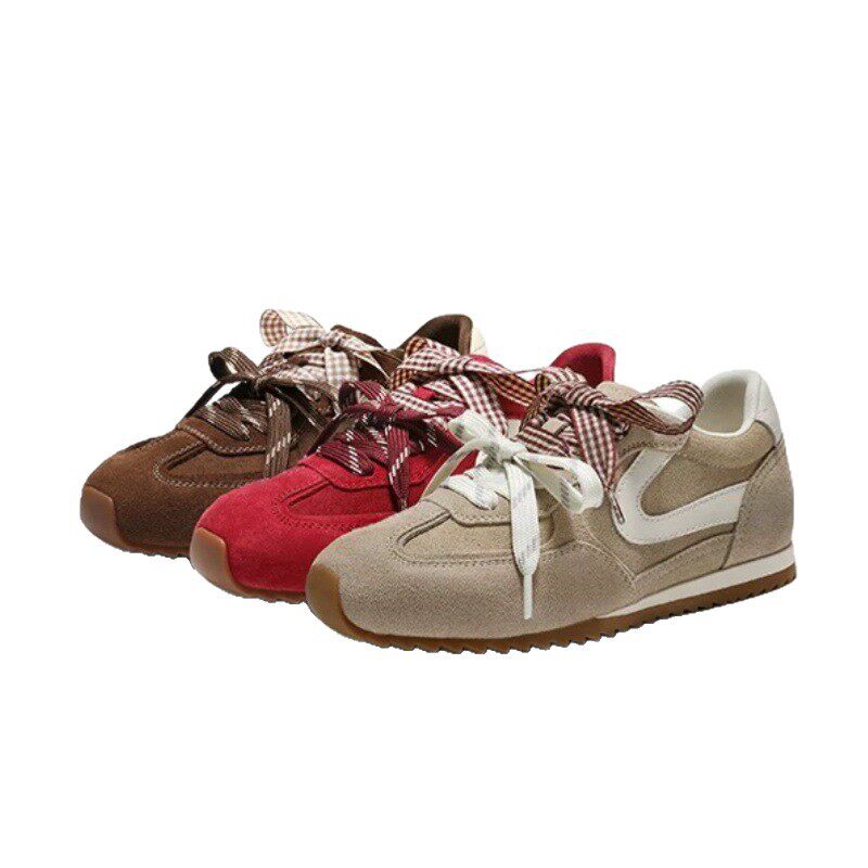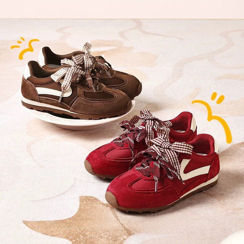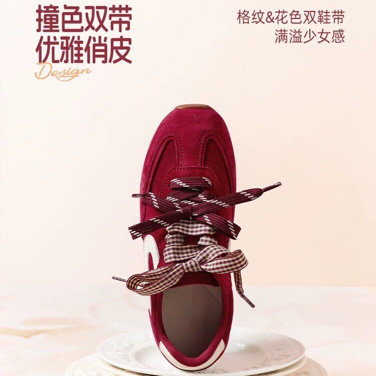 孙乐言推荐树莓糖红色复古芭蕾德训鞋女新款休闲双鞋带德训鞋子女