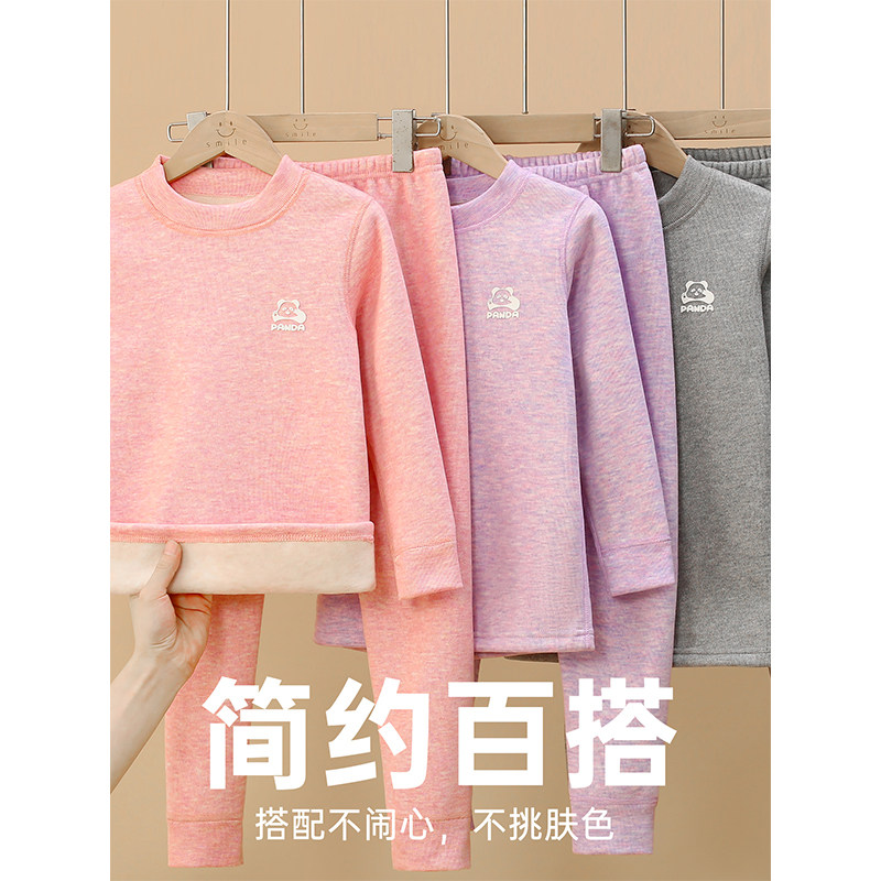 儿童保暖内衣套装男童秋衣秋裤女宝宝绒德无痕加绒青少年秋冬睡衣