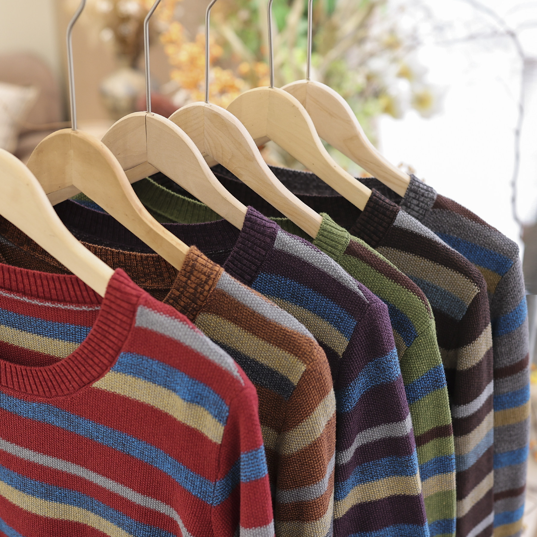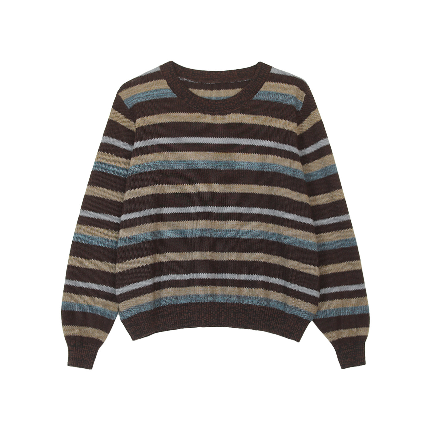 咖咪羽圆领拼色提花针织衫毛衣春秋款棉线套头显瘦百搭减龄上衣