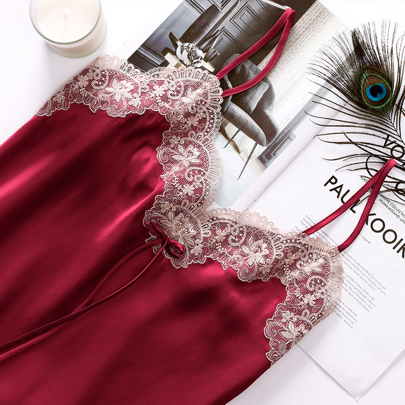 美标吊带真丝睡裙女春夏19姆米重磅丝绸睡衣红色婚庆桑蚕丝家居服