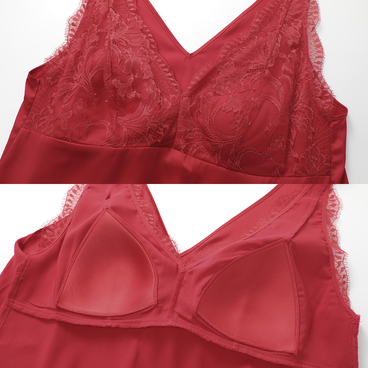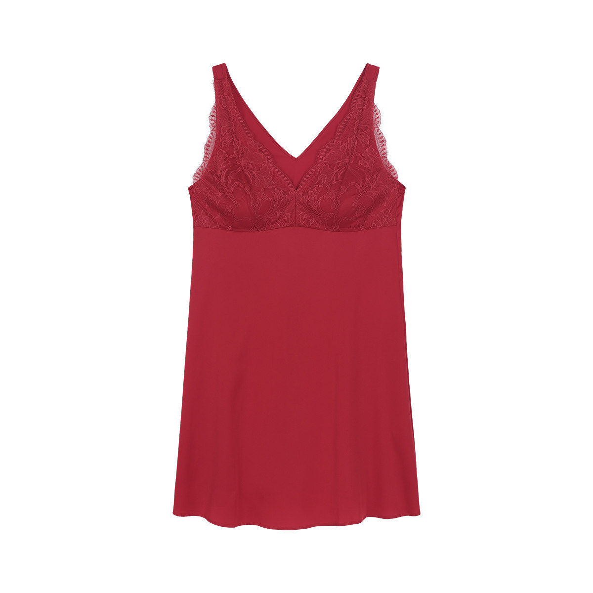 安莉芳旗下E-BRA本命年红色v领吊带睡裙女蕾丝带杯家居裙KL00158